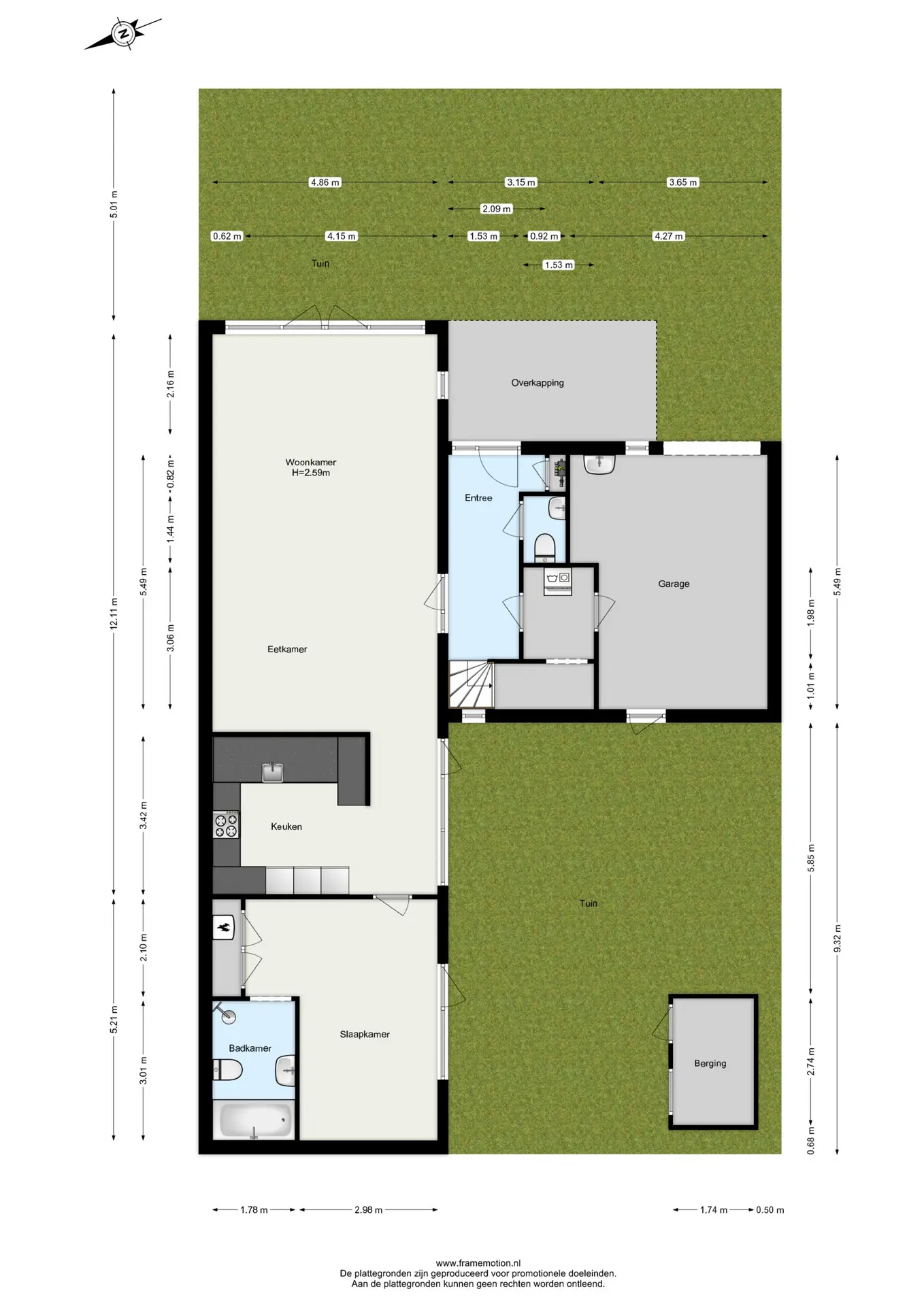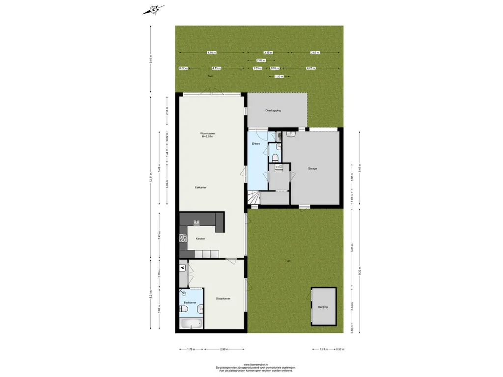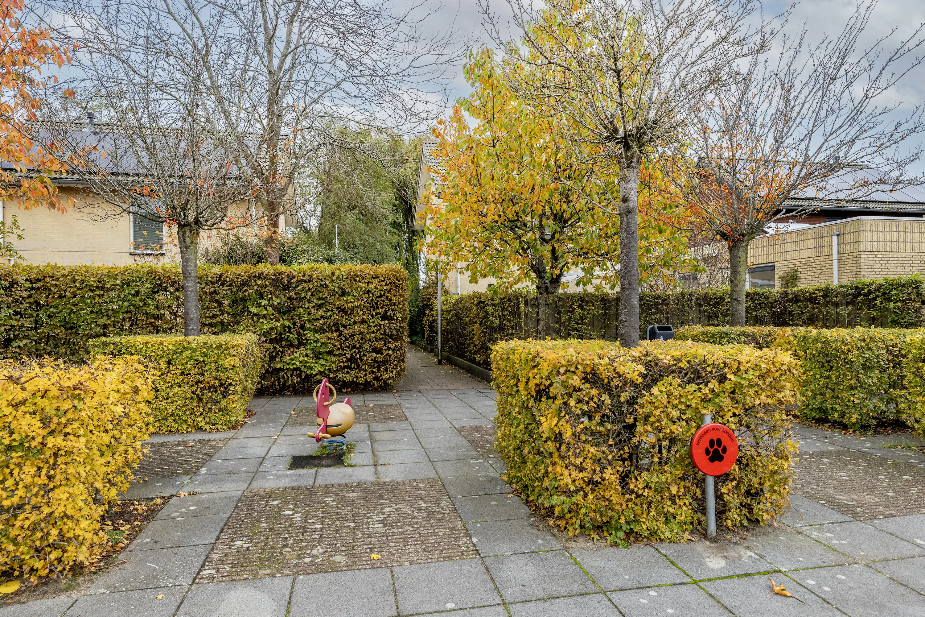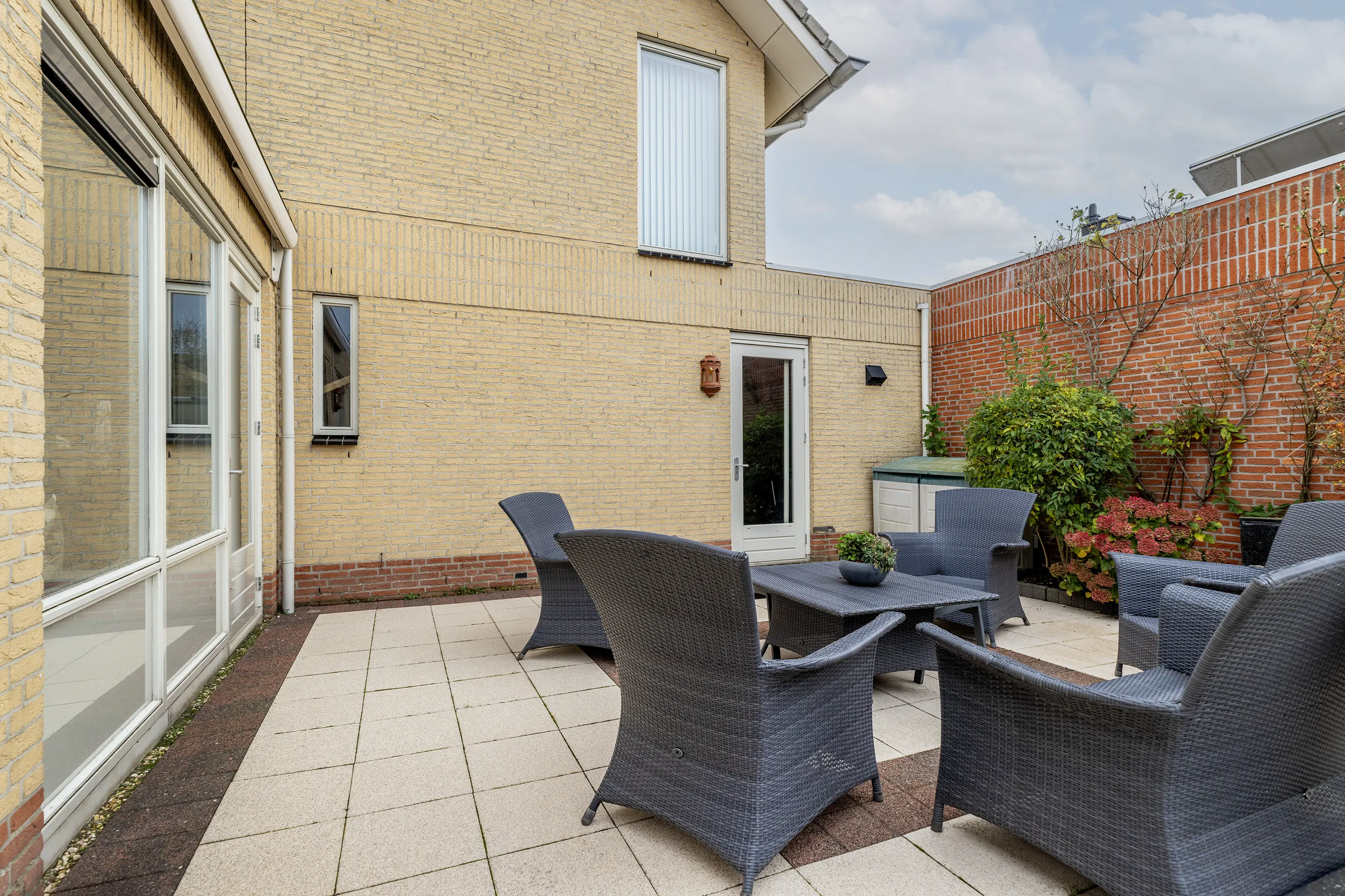 Via de ruime oprit met plaats voor twee auto’s bereikt u de entree van de woning én de garage. De verzorgde voortuin is voorzien van vaste plantenborders en biedt voldoende ruimte voor een zitje op het ruime terras.