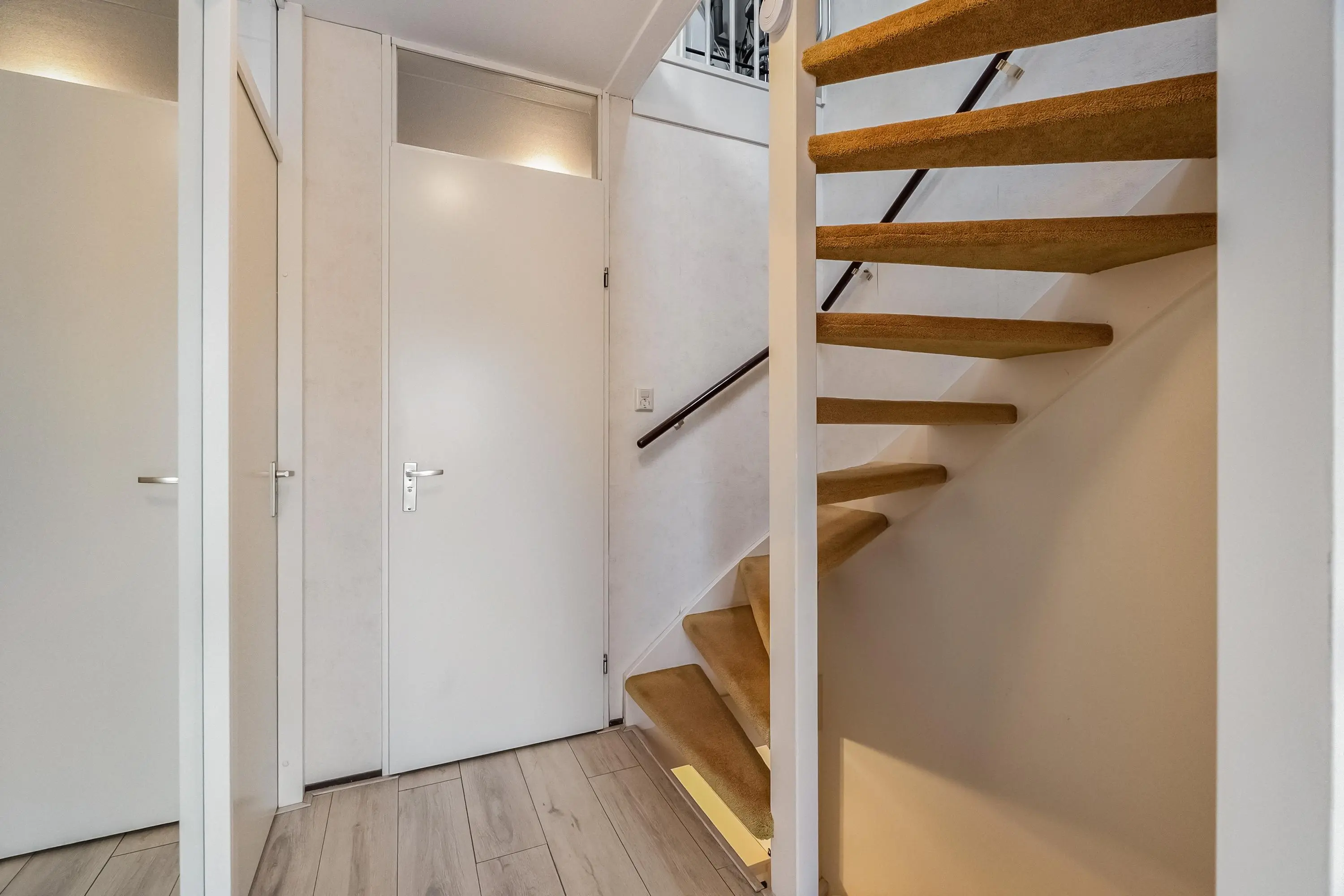 Ruime overloop met trap naar de 2e verdieping en toegang tot alle vertrekken.