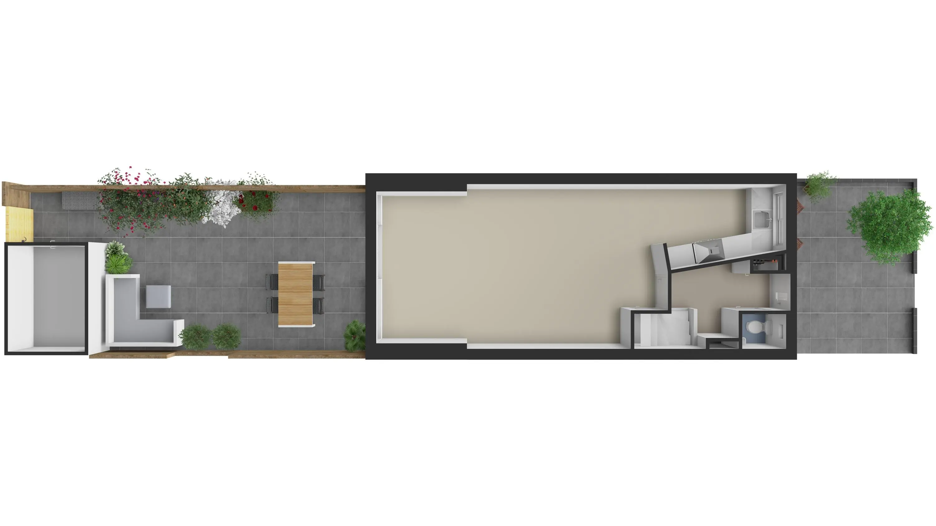 - Uitgebouwde tuingerichte woonkamer met vloerverwarming en openslaande deuren;