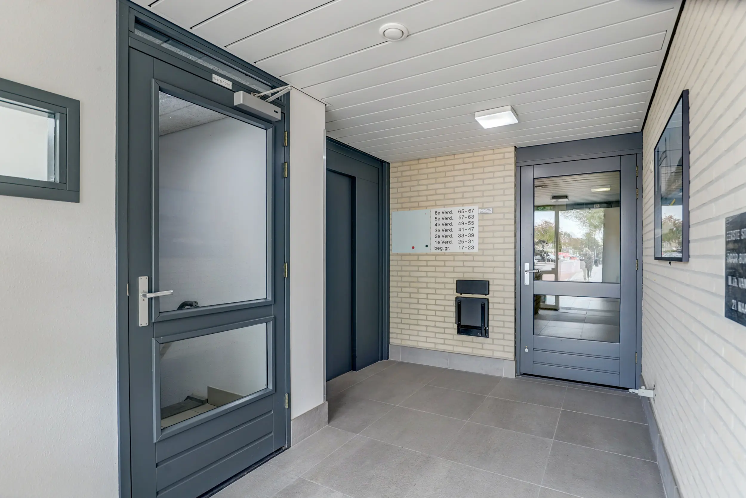 Je parkeert de auto op je eigen plek op het parkeerterrein en loopt de centrale hal van het complex binnen. Daar haal je de post uit de brievenbus en neem je de lift naar de eerste verdieping. Achter de voordeur stap je binnen in een ruime hal, waar je je jas ophangt en doorloopt naar de woonkamer.