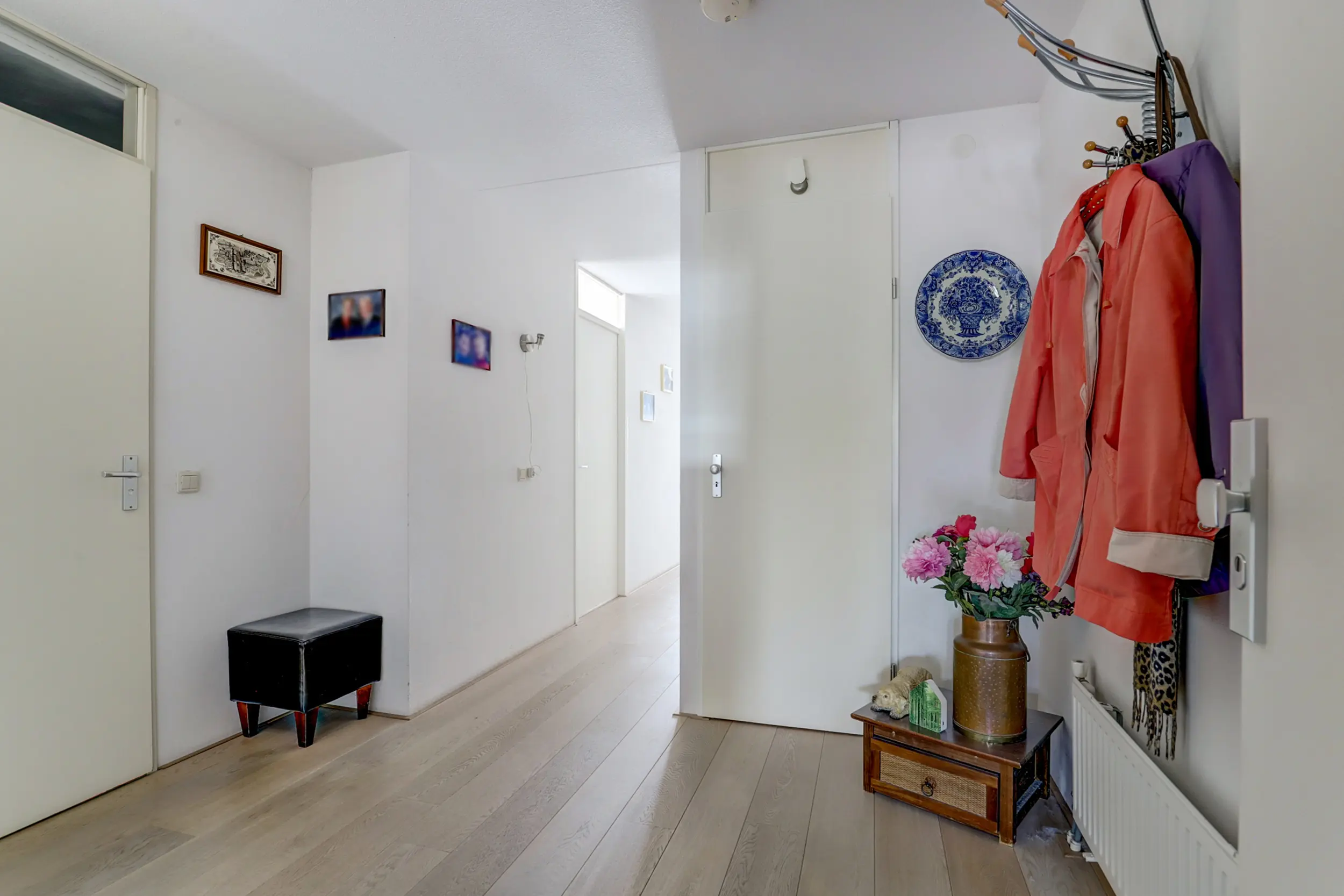 In de hal bevindt zich de interne berging met aansluiting voor wasmachine en droger. Hier is ook plaats voor wat voorraad en de stofzuiger, en bevinden zich het ventilatiesysteem en de cv-ketel.