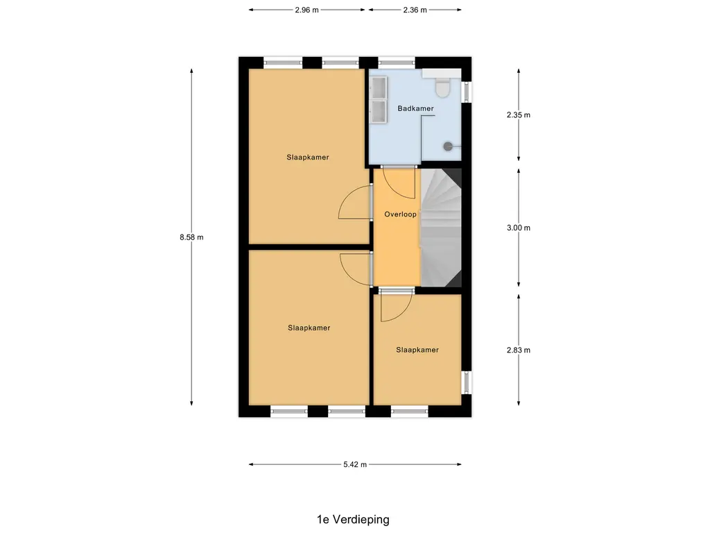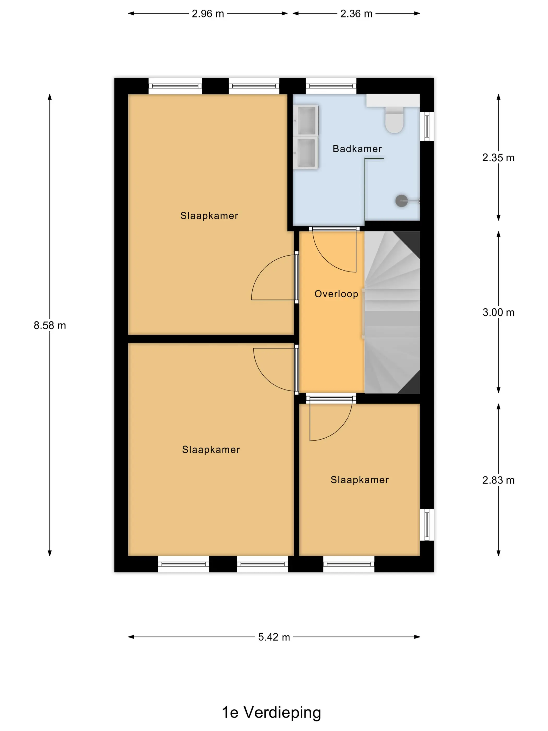 Op de eerste verdieping vindt u drie ruime slaapkamers, elk met een eigen karakter. De grote hoofdslaapkamer ligt aan de tuinzijde en baadt in natuurlijk licht, een heerlijke plek om de dag ontspannen te beginnen. De tweede en derde slaapkamer zijn ideaal als kinderkamer, logeerplek of werkkamer.
