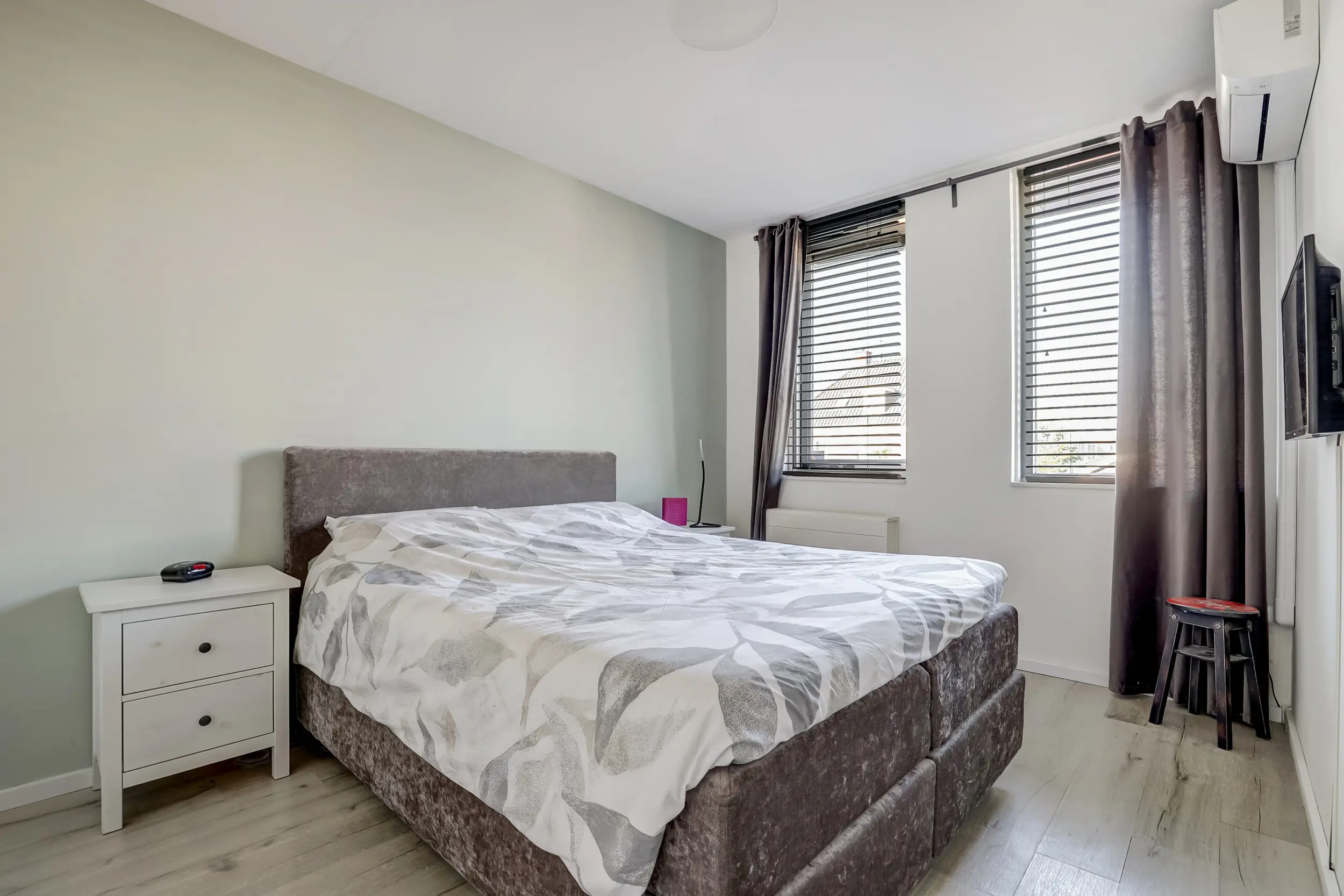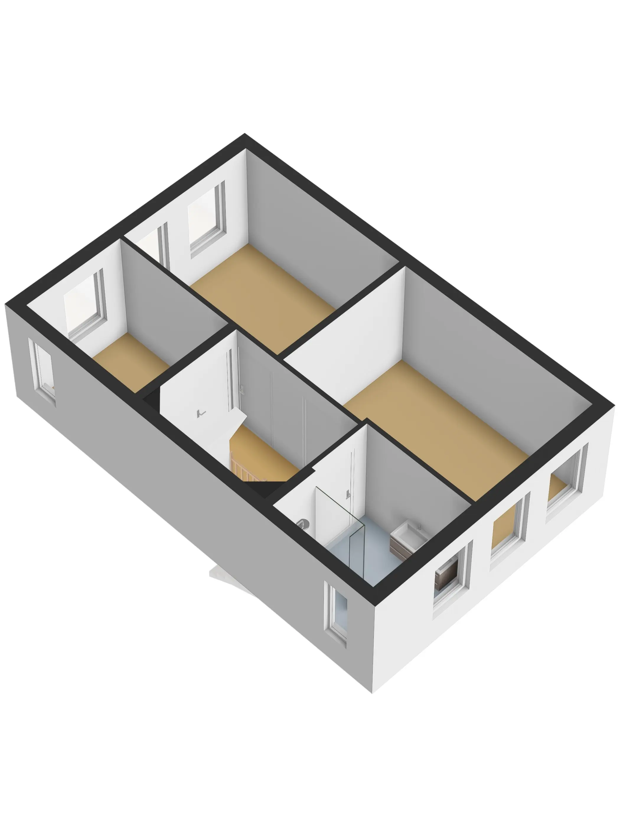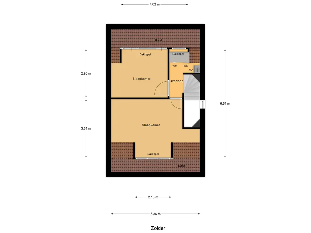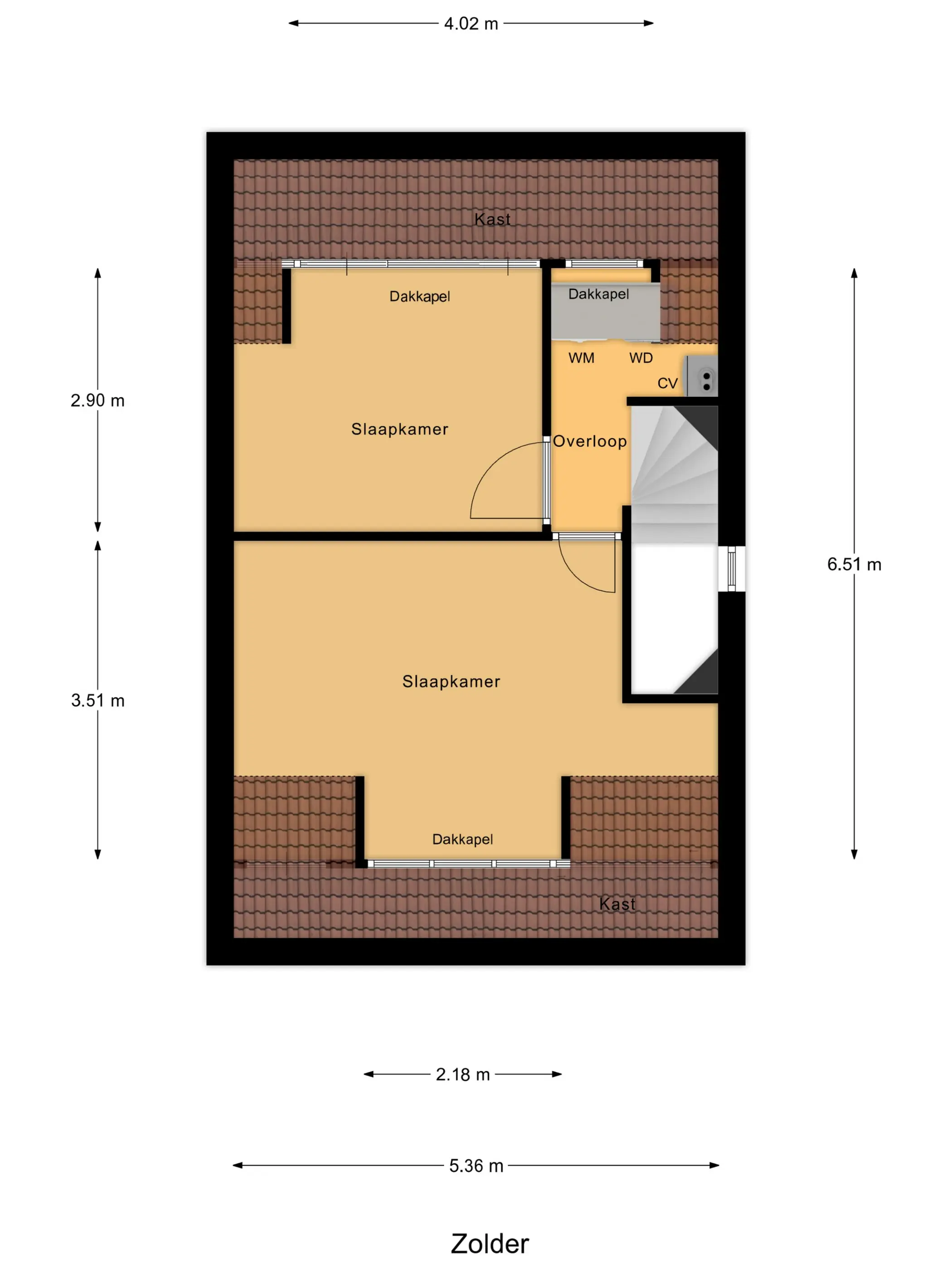 De vaste trap leidt naar de zolderverdieping, waar nog eens twee ruime kamers zijn gecreëerd. Dankzij de dakkapellen is de ruimte optimaal benut. Deze verdieping leent zich perfect voor een master bedroom, werkruimte of een gastenverblijf.