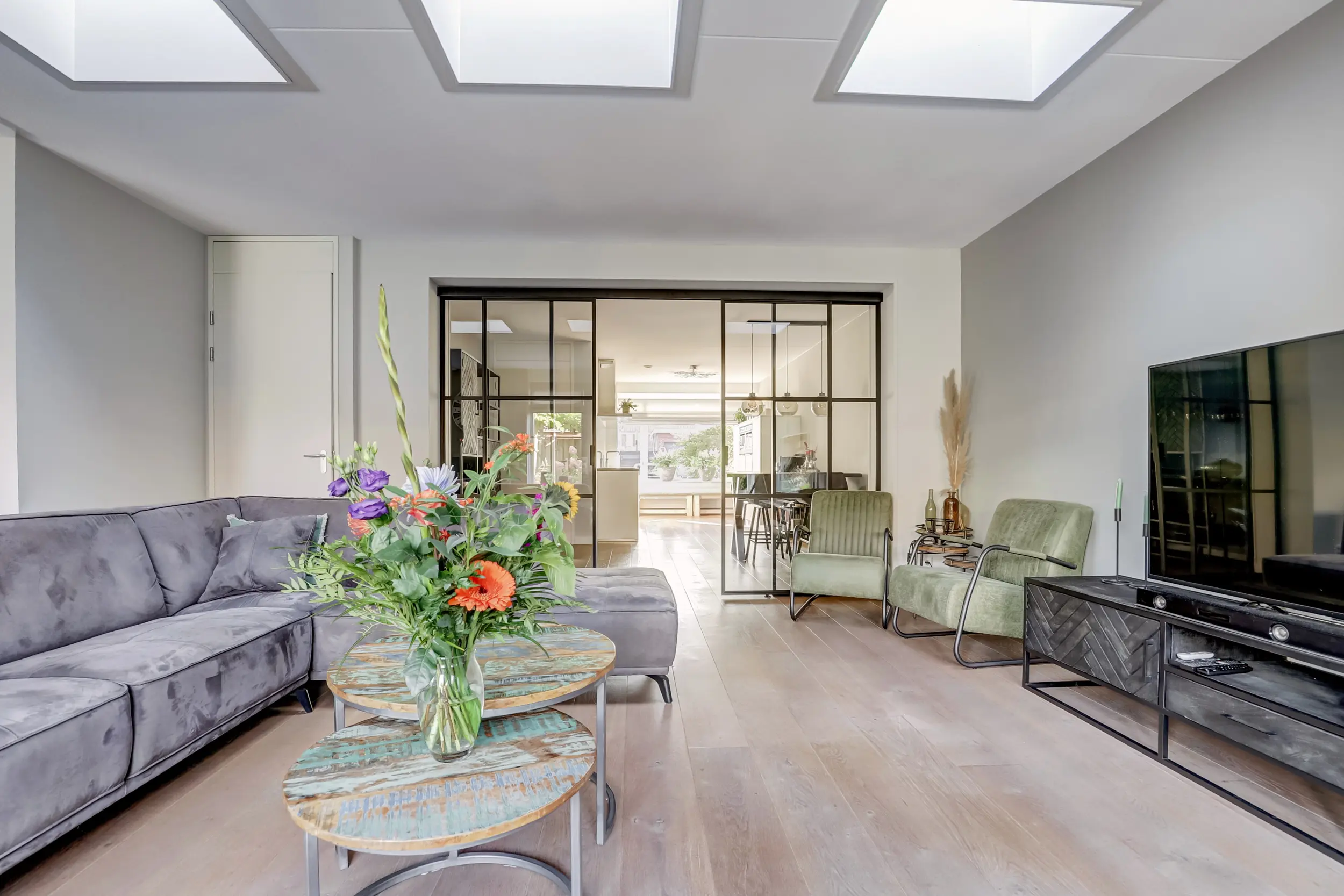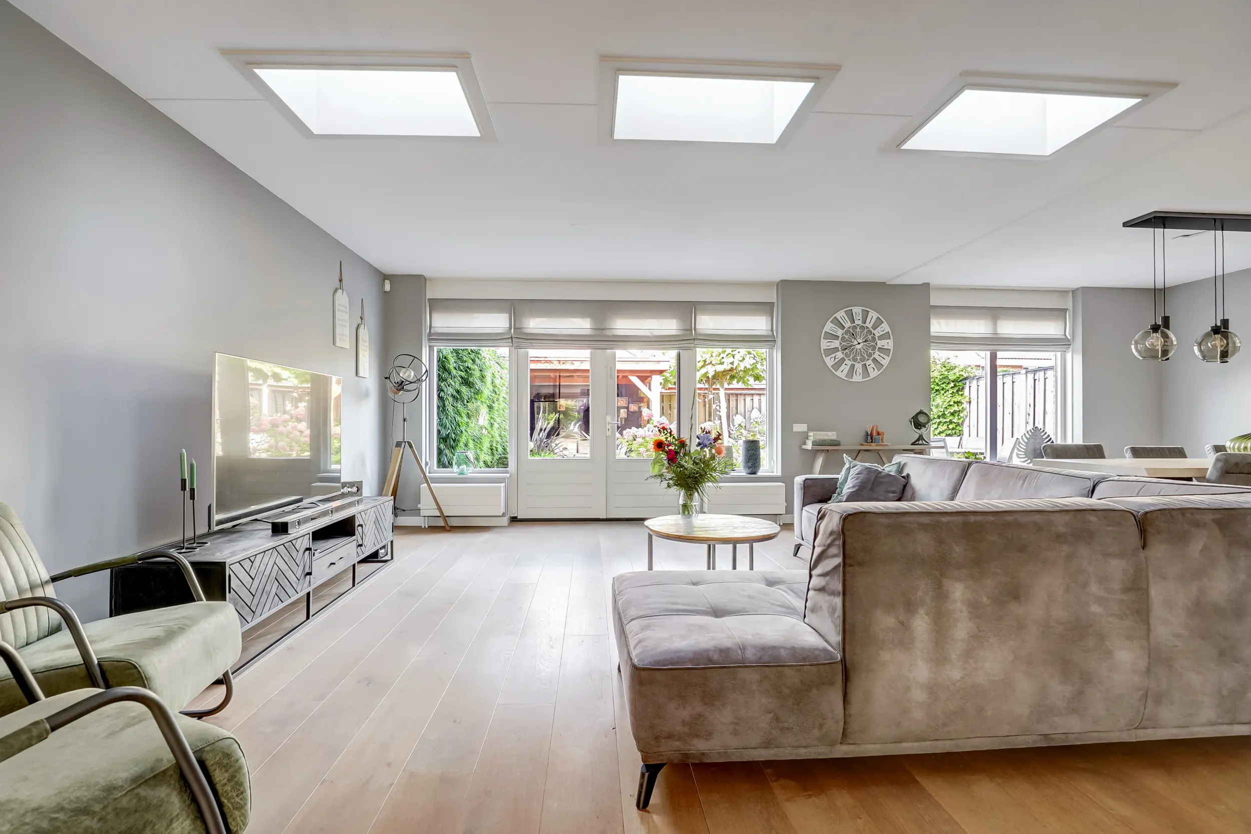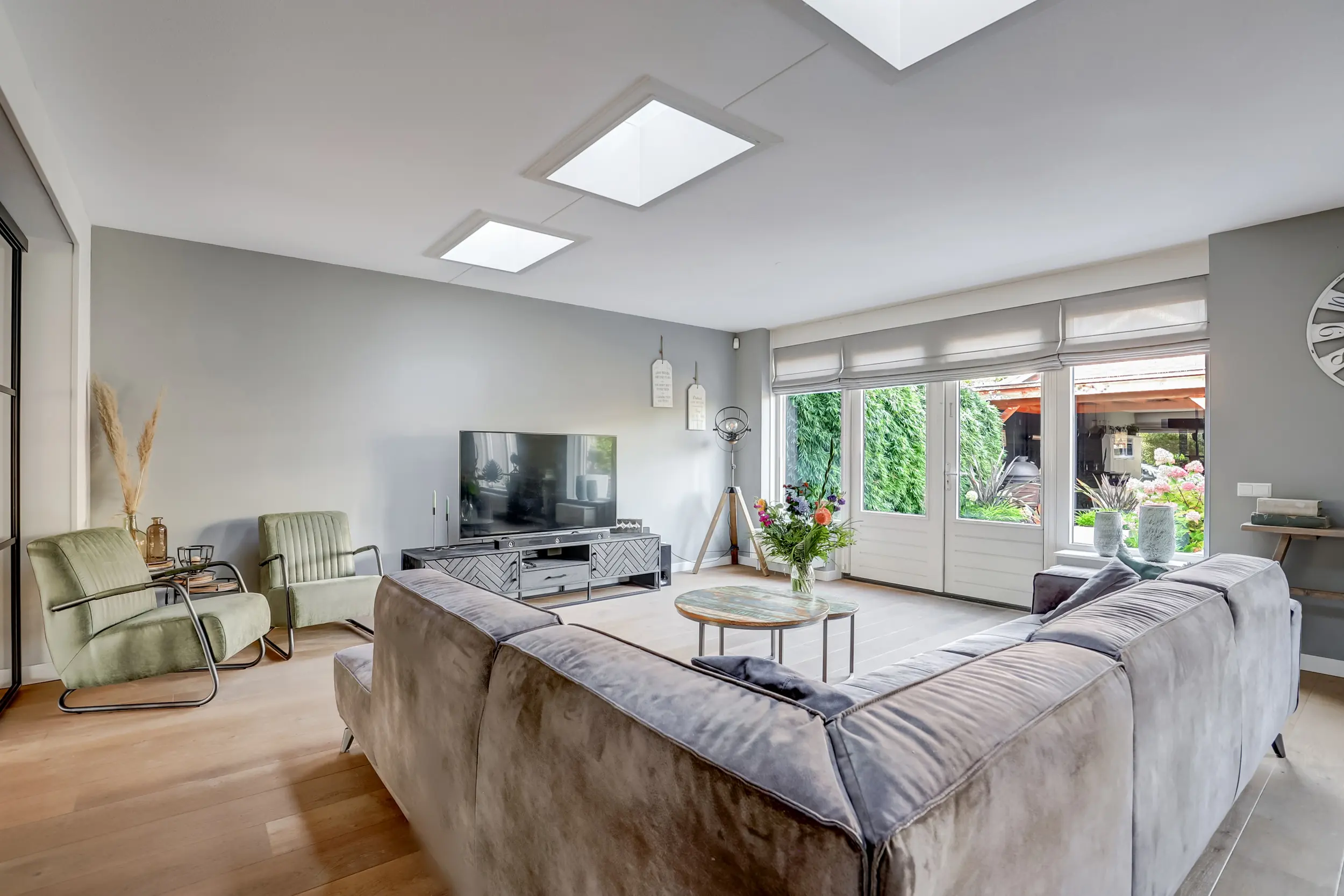 - Ruime, lichte woonkamer met openslaande deuren