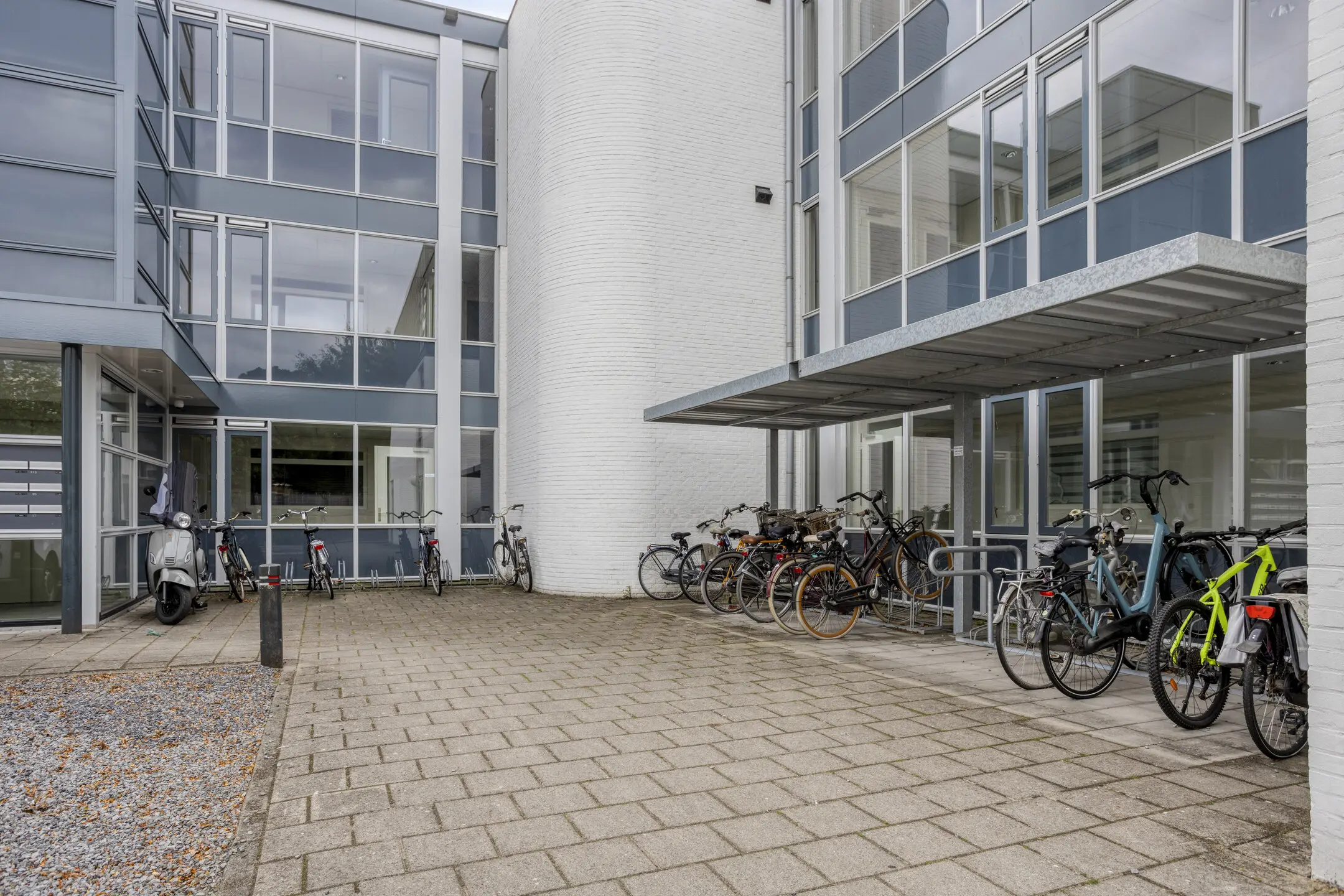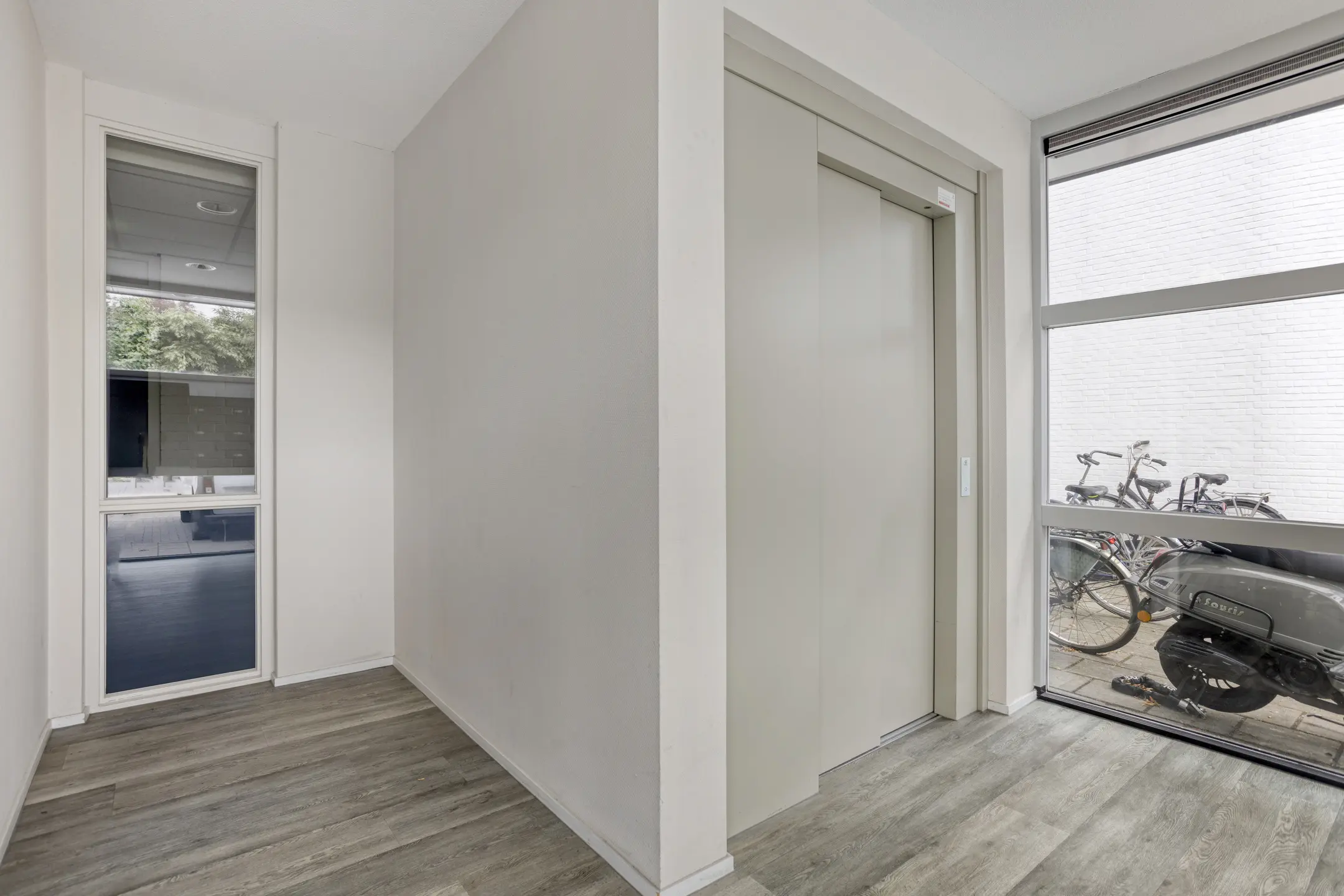 Gesloten entree met bellentableau, brievenbussen, centrale hal met trappenhuis en lift. Het appartementencomplex is voorzien van 2 beveiligingscamera’s.