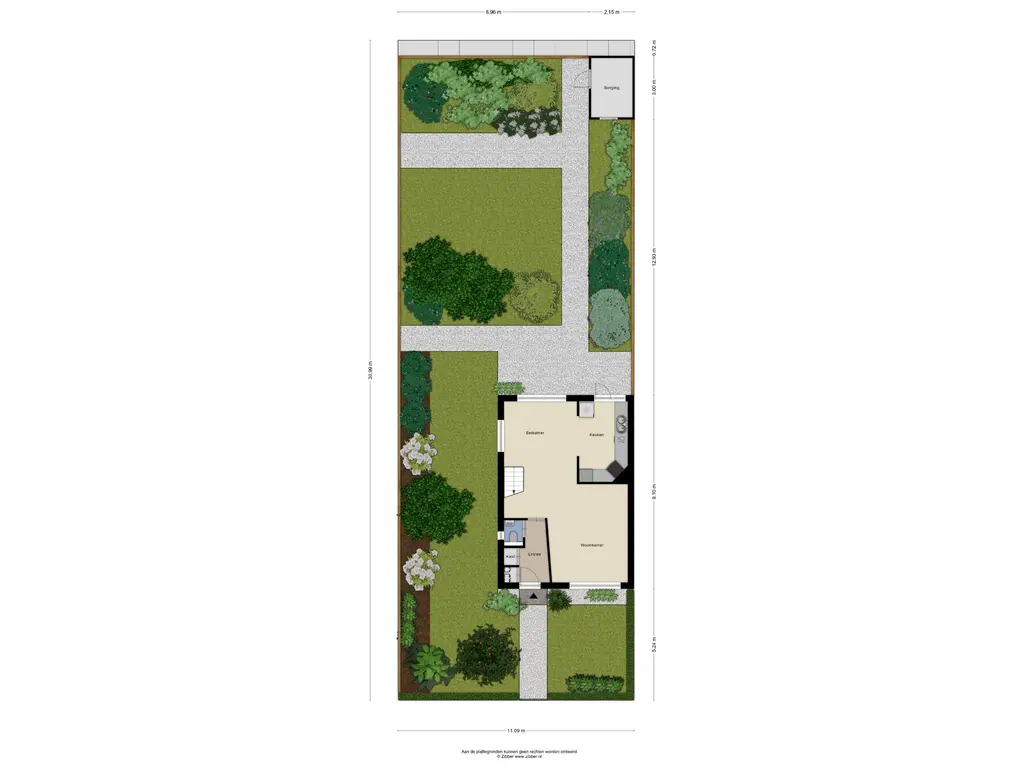 De zijtuin is pure luxe, want die geeft je een extra ruimtelijk gevoel en vanaf halverwege de dag ligt ook de voortuin in de zon.