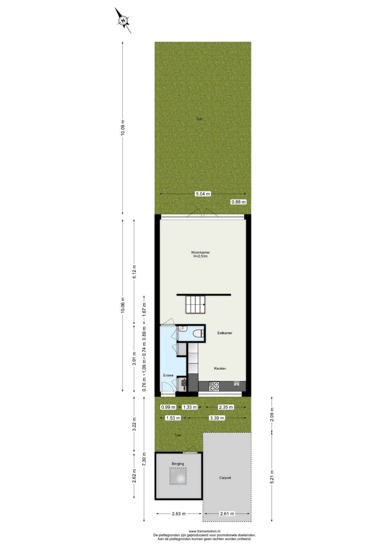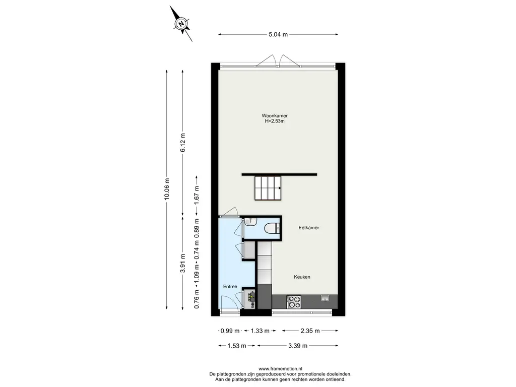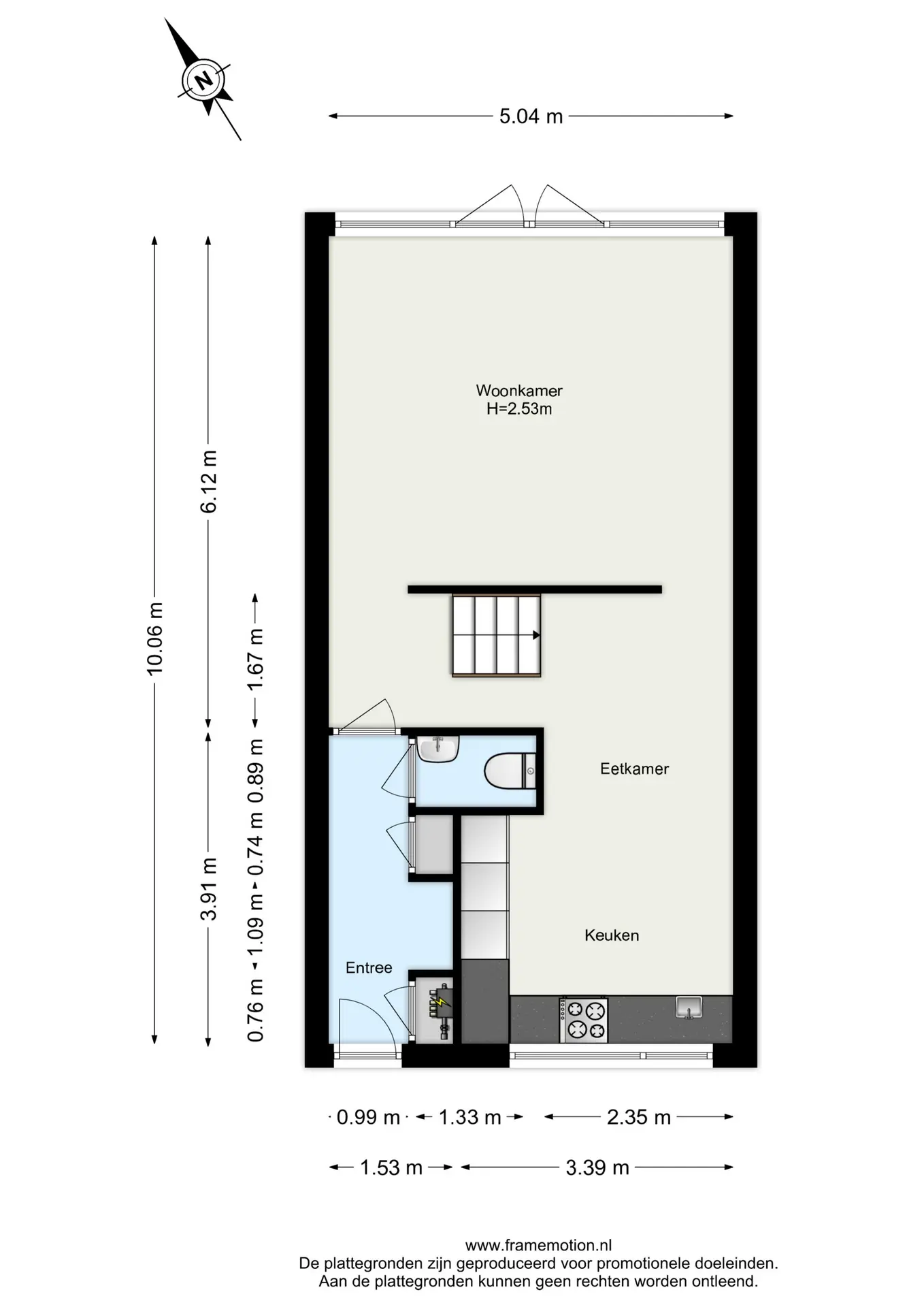 Bij binnenkomst bevindt zich de hal met meterkast en een toilet met duoblok en half betegelde wanden. Via een tussendeur bereikt u de lichte en speels ingedeelde woonkamer. Aan de achterzijde ligt de zitkamer waar de grote raampartijen zorgen voor veel daglicht. De openslaande deuren geven toegang tot de achtertuin, die is gelegen op het noordoosten en veel privacy biedt. De begane grond is afgewerkt met een grindvloer.