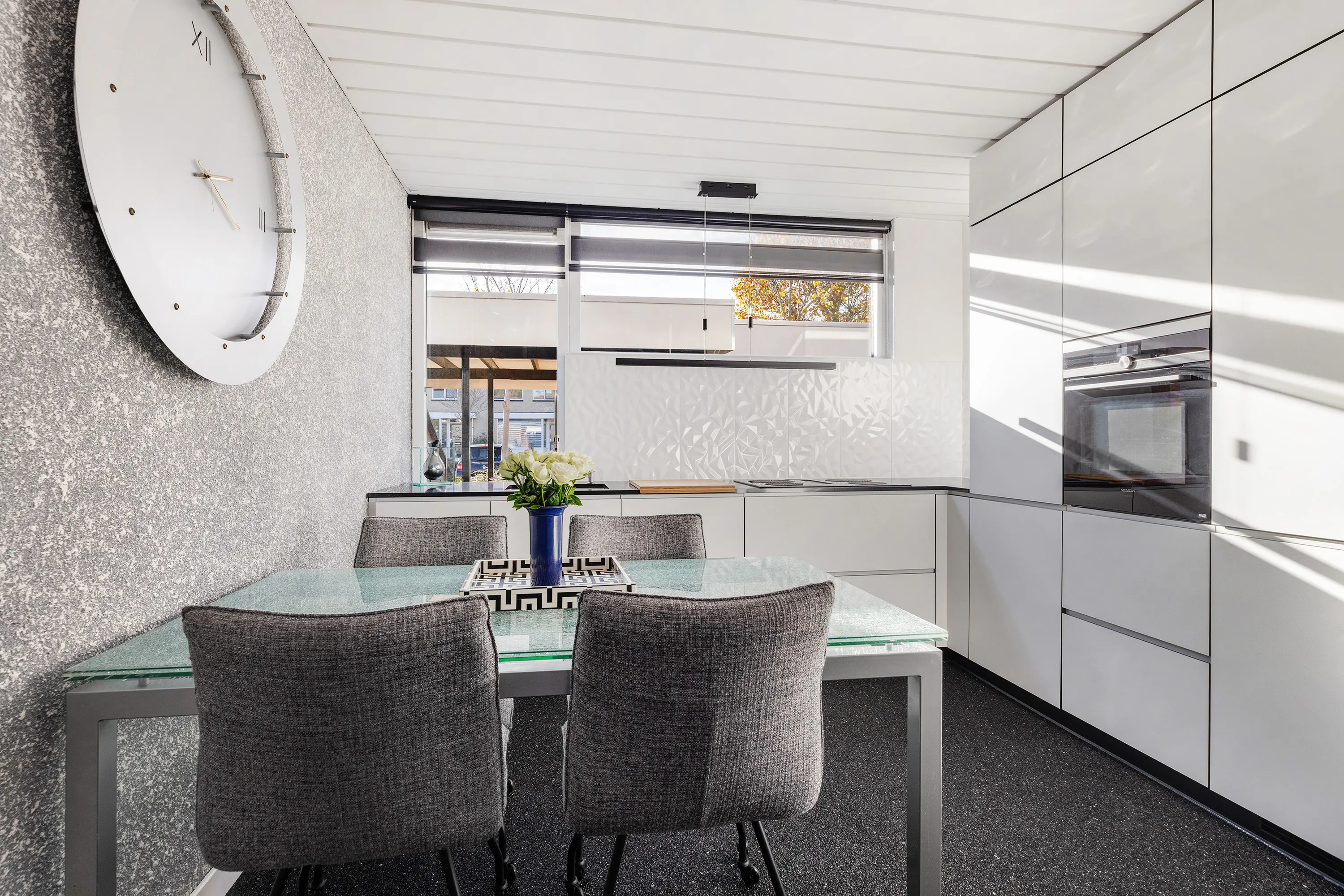 Aan de voorzijde van de woning bevindt zich de moderne en complete keuken; deze is geplaatst in een hoekopstelling. Deze is ongeveer vijf jaar oud en voorzien van een koelkast, vrieskast, hete lucht oven, inductiekookplaat, afzuiging en vaatwasser. De keuken biedt voldoende werk- en bergruimte en sluit mooi aan op het eetgedeelte in de woonkamer.
