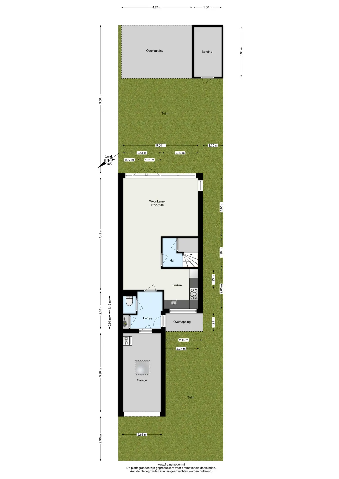 Zonnige achtertuin (aangelegd in 2021) met overkapping en berging