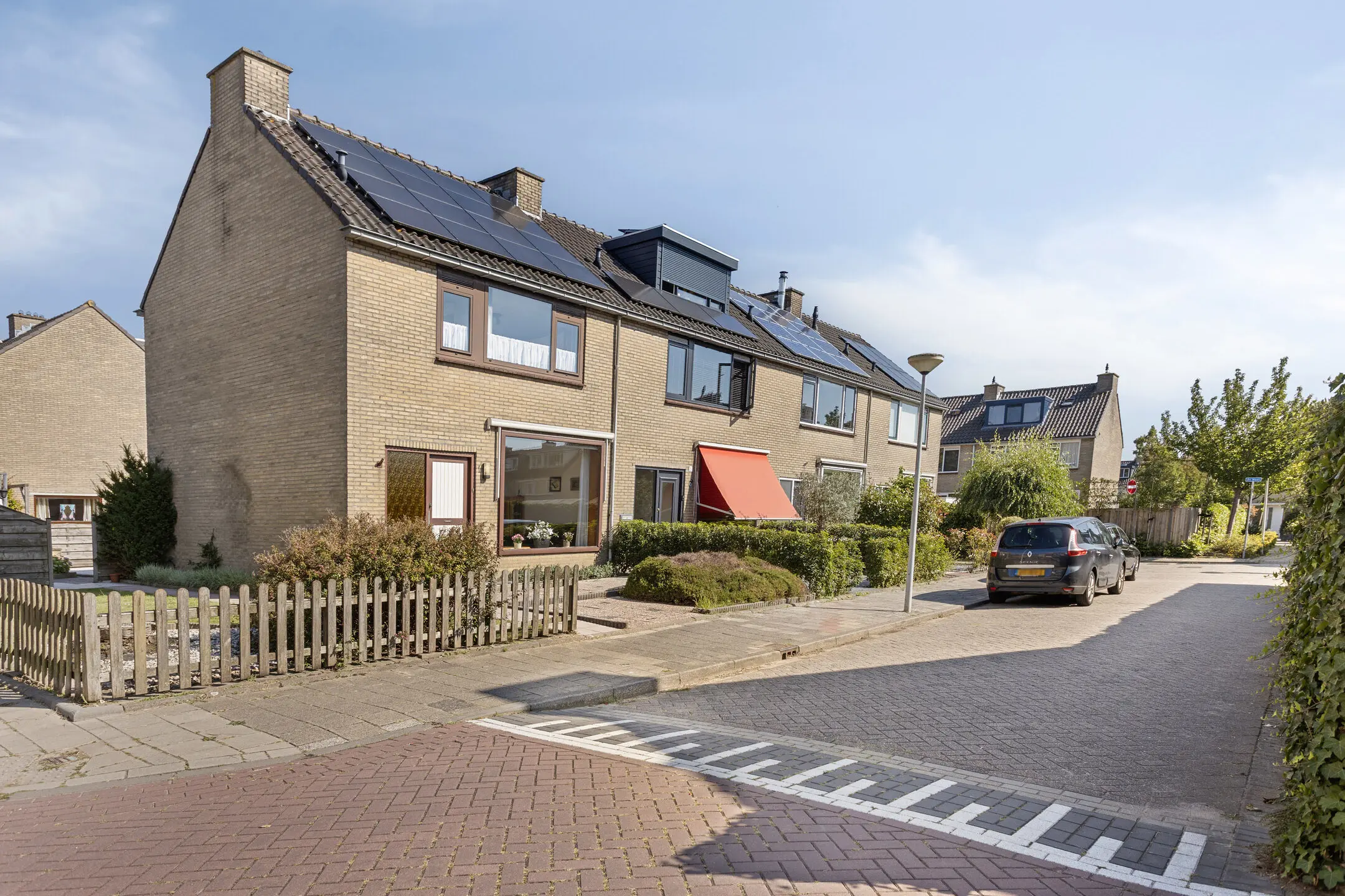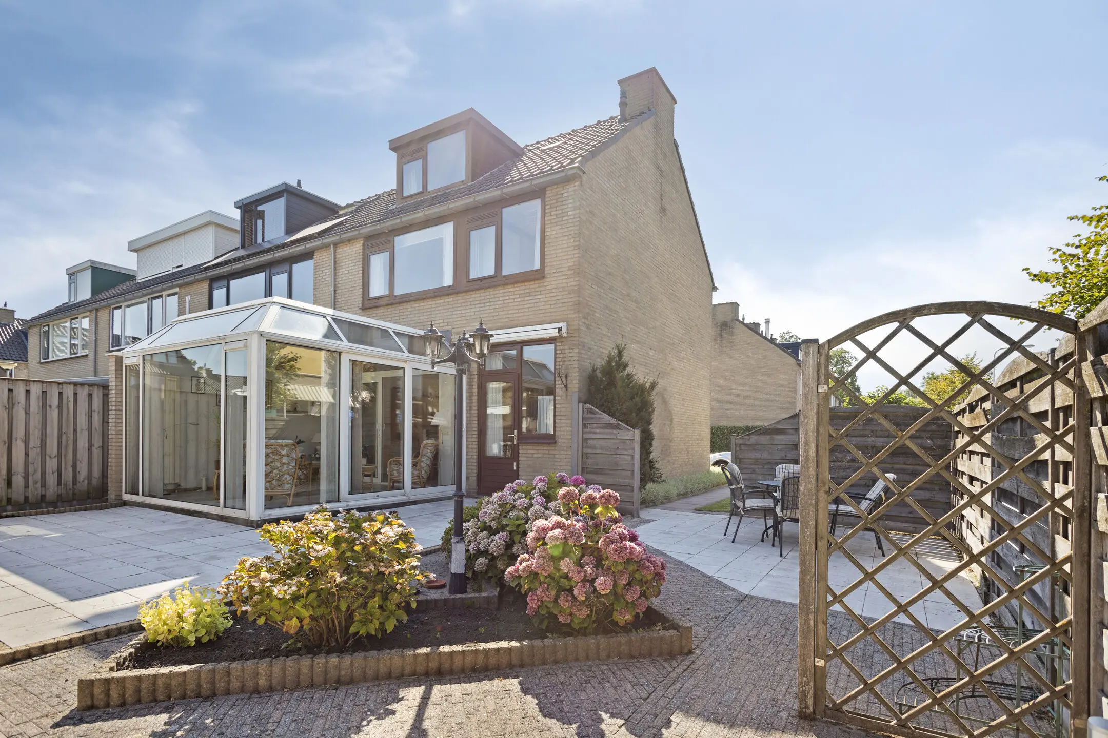 De voor- en zijtuin zijn voorzien van bestrating, beplanting en een achterom naar de achtertuin.