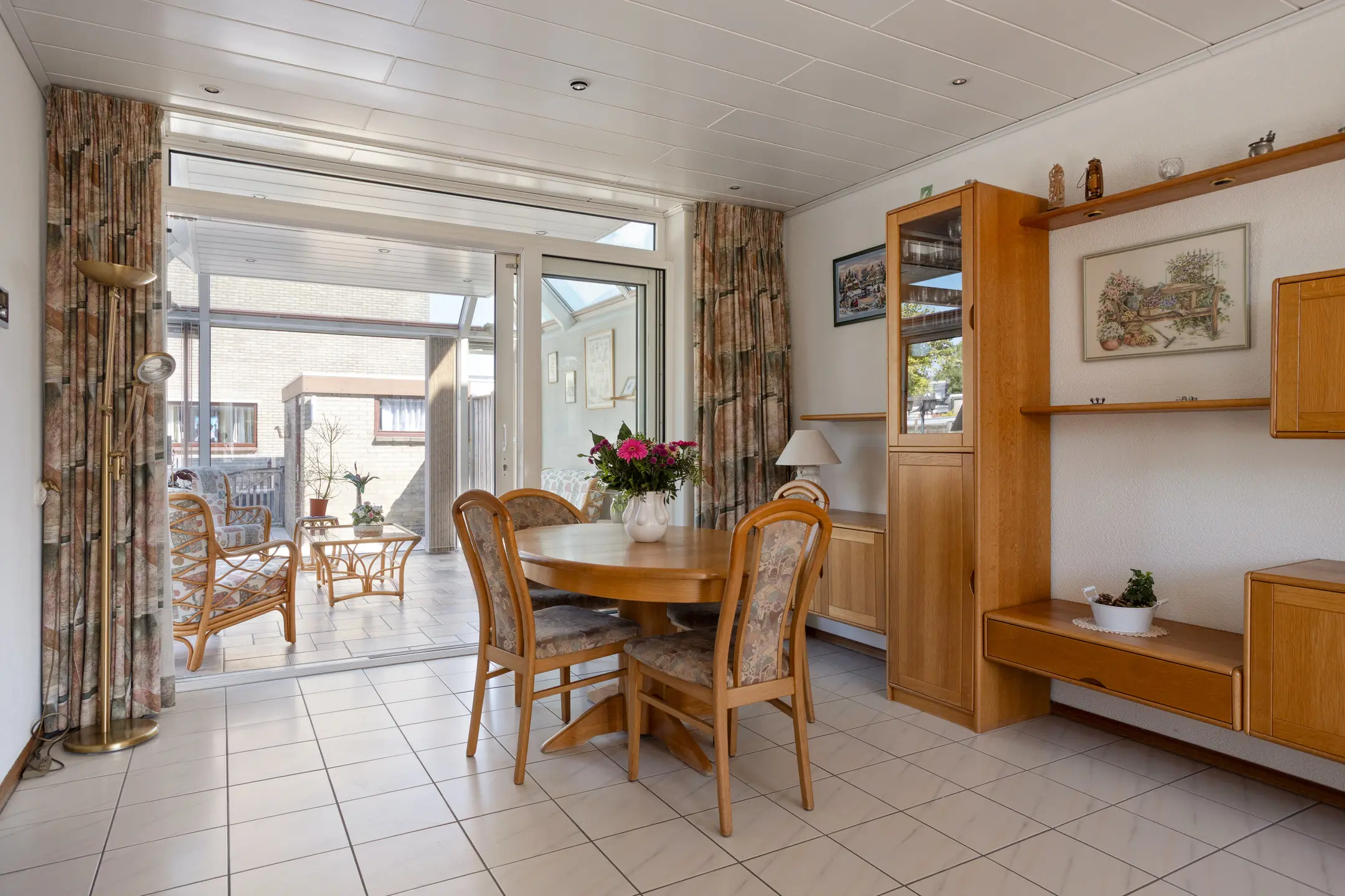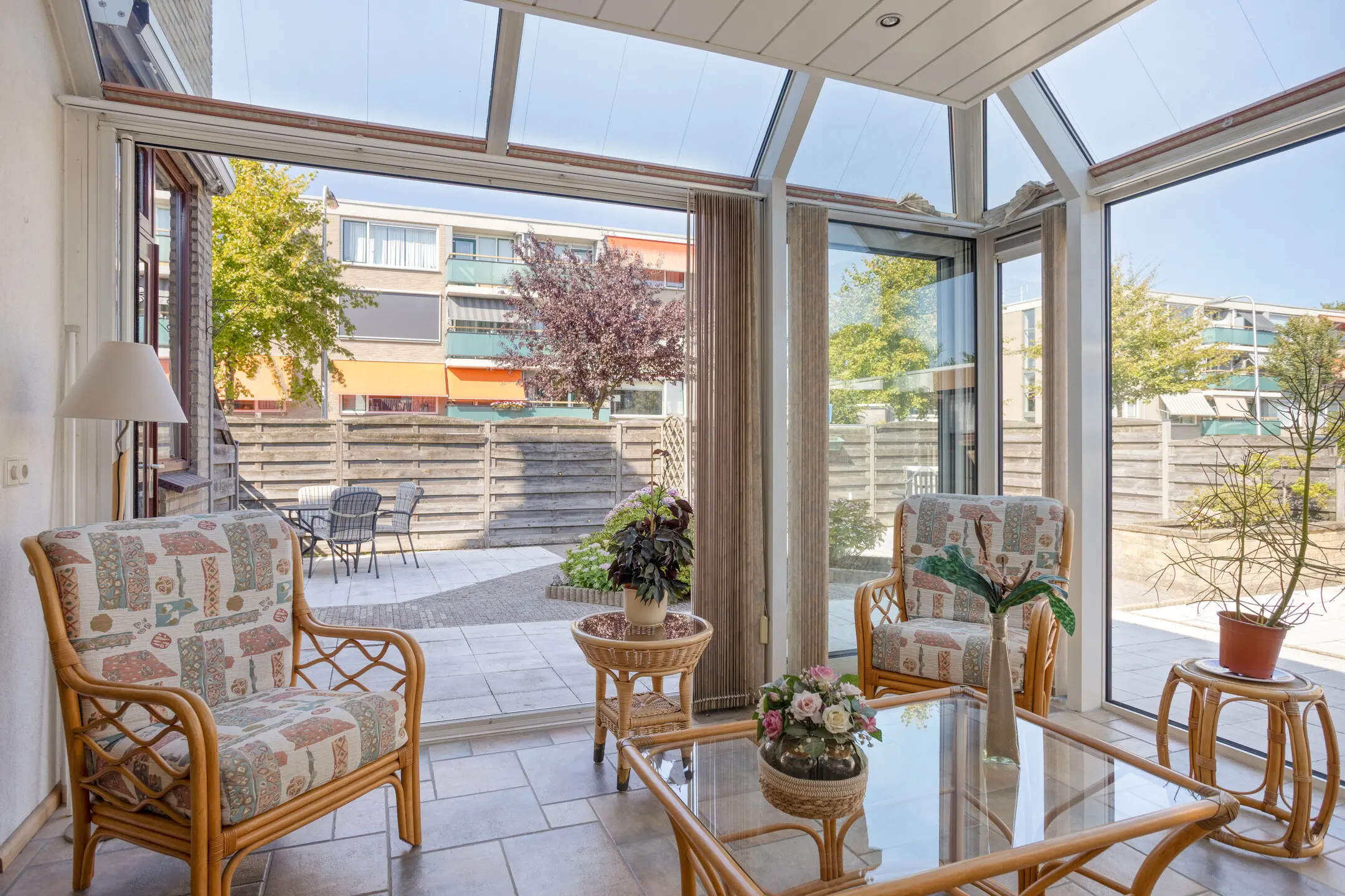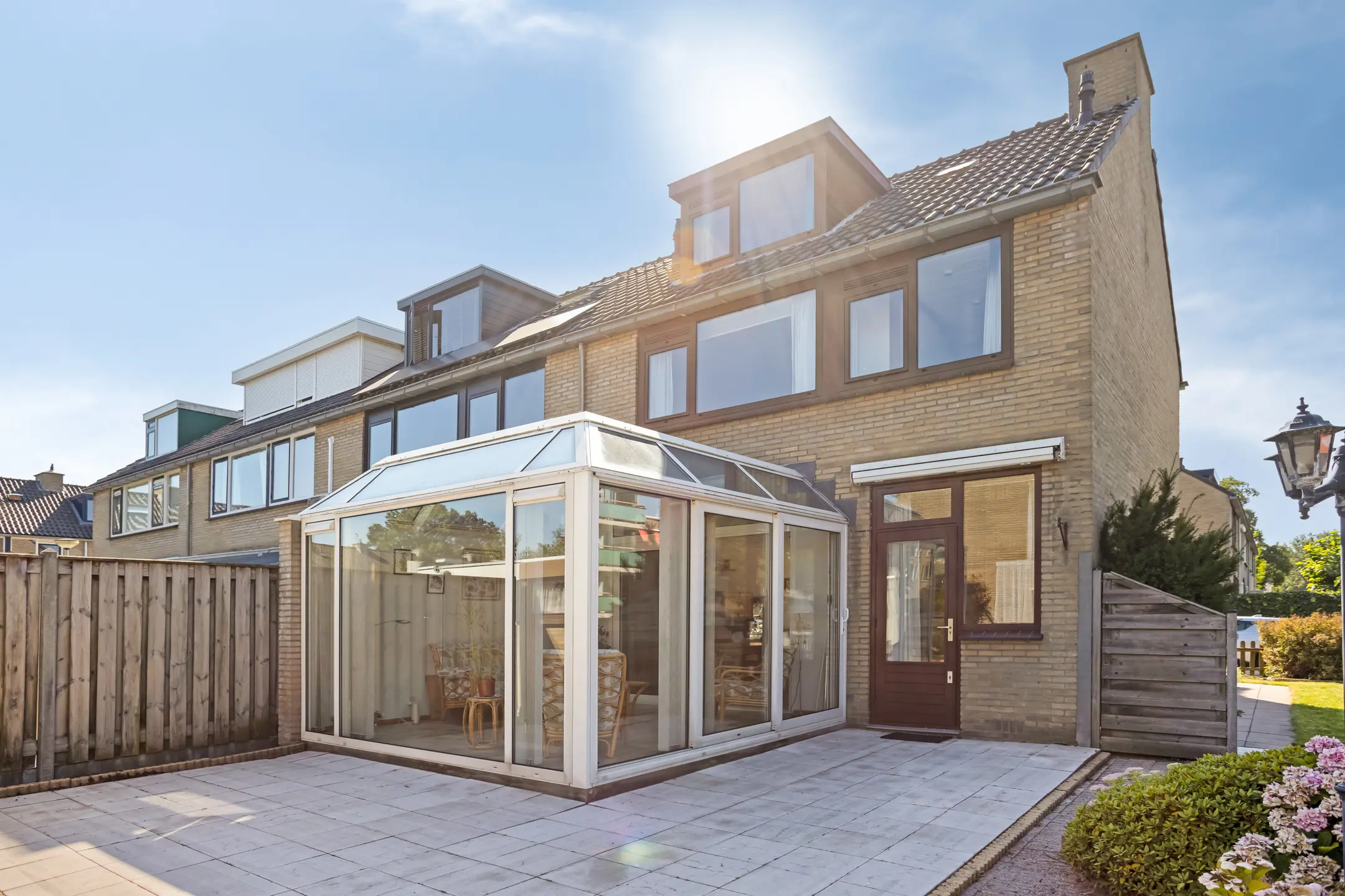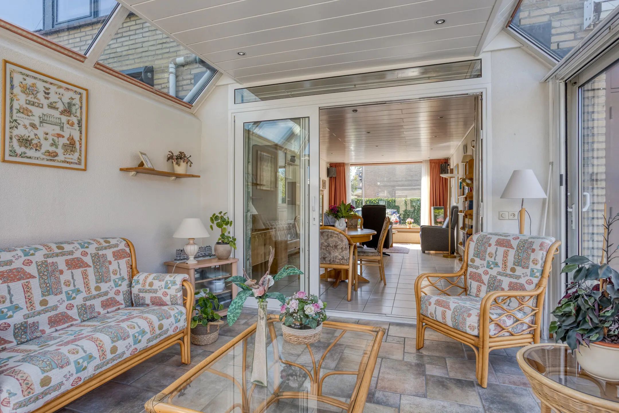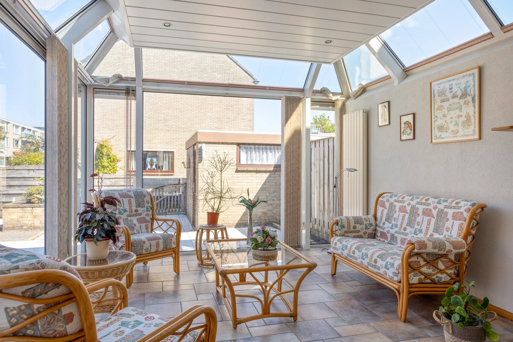 De serre (ca. 14 m2) is onderheid en is voorzien van een lichte tegelvloer met vloerverwarming met een aparte pomp en spotjes. De serre is verder voorzien van grote puien (met horren) waarvan twee derde geopend kan worden, waardoor u in de zomer het buitengevoel naar binnen haalt. Dankzij de vloerverwarming is deze ruimte ook in de winter heerlijk comfortabel, waardoor u hier het hele jaar door van kunt genieten.