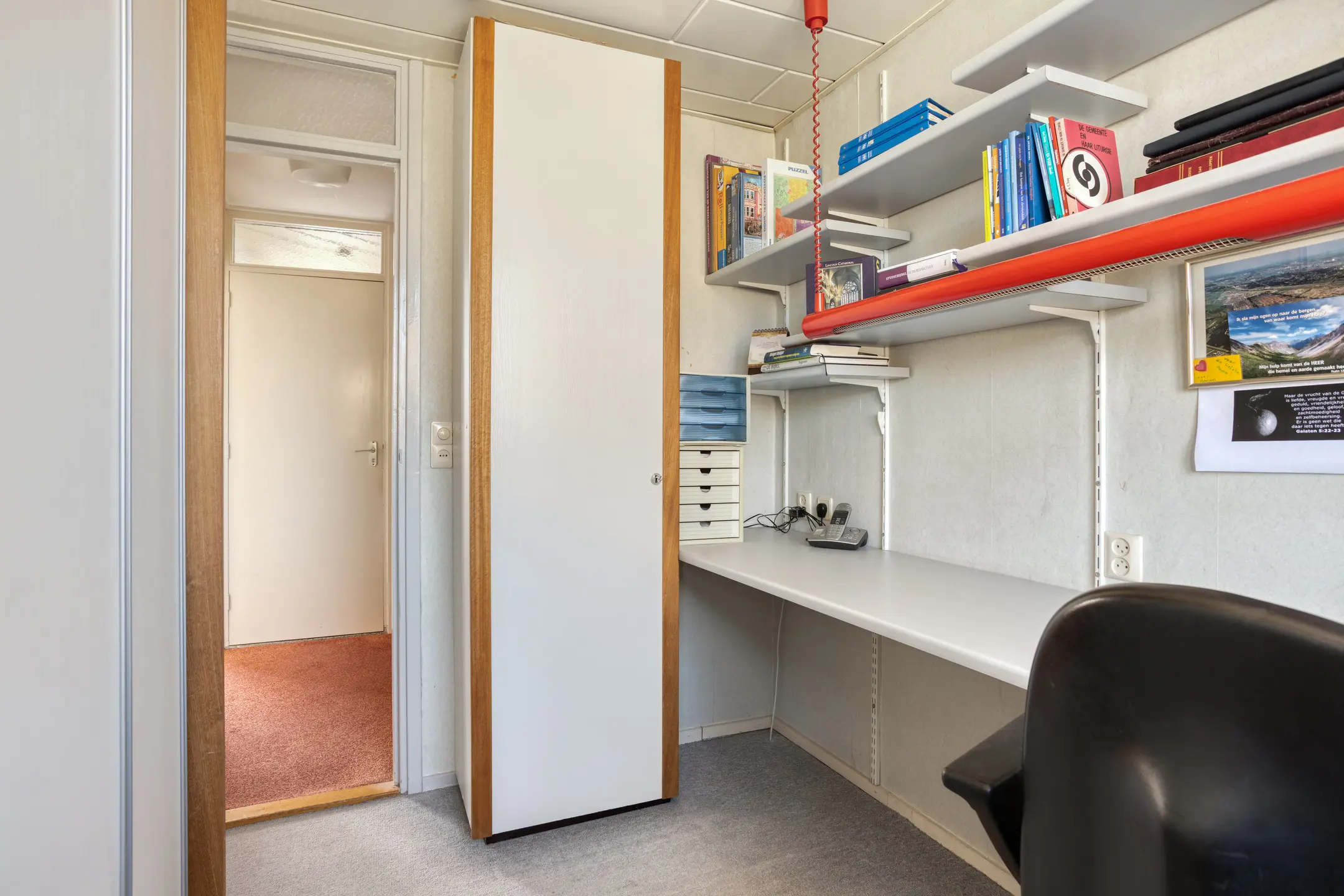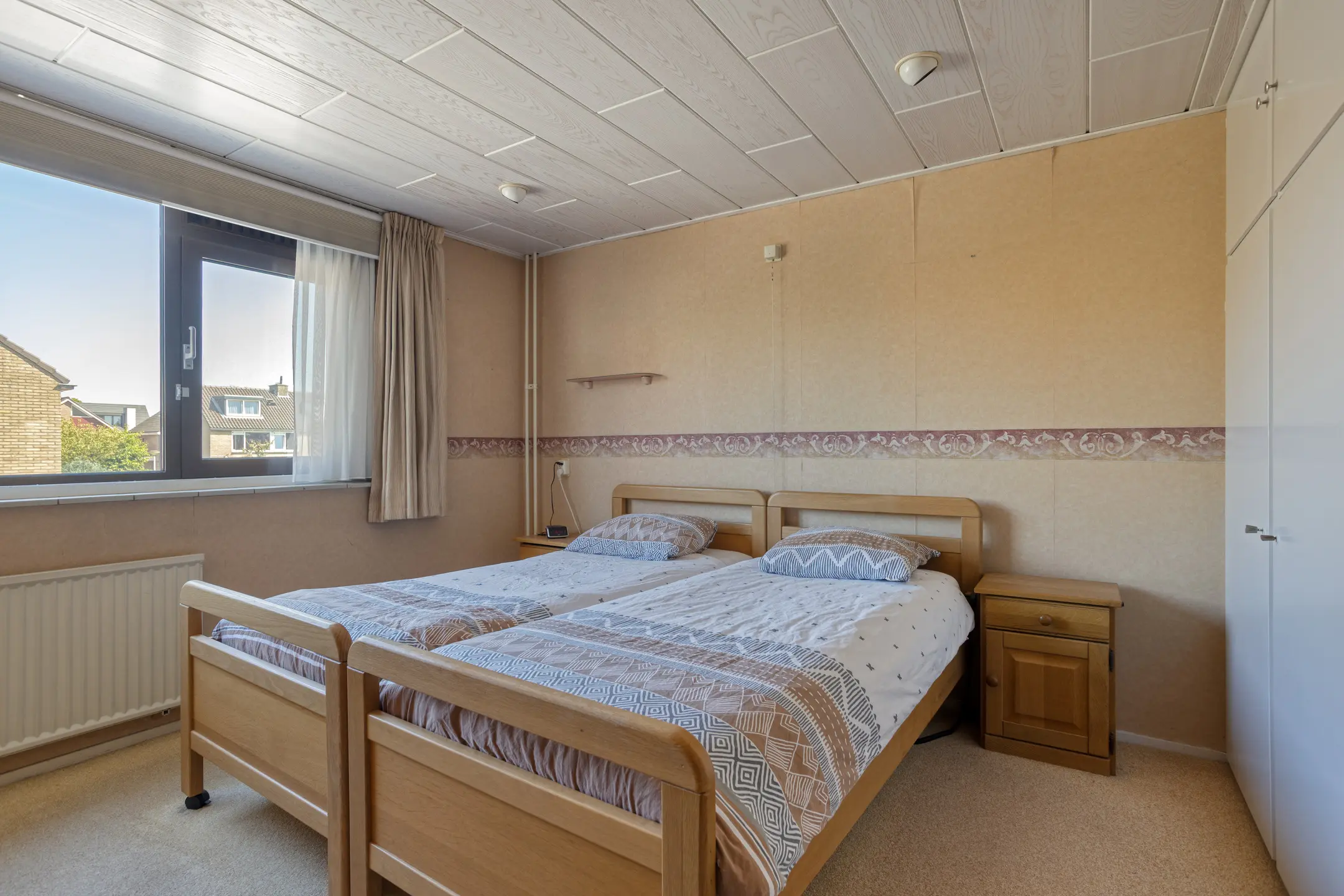 Slaapkamer 2 (ca. 11 m2) is gelegen aan de voorzijde van de woning en is voorzien van 2 deuren vaste kast met bovenkastjes.