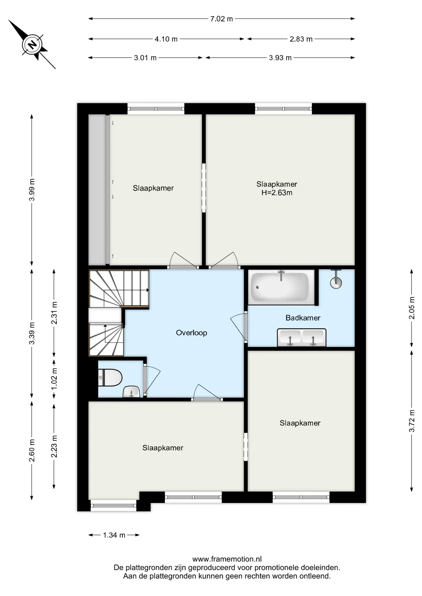 Slaapkamer 4 (ca. 12 m²) gelegen aan de voorzijde en voorzien van een Velux dakraam