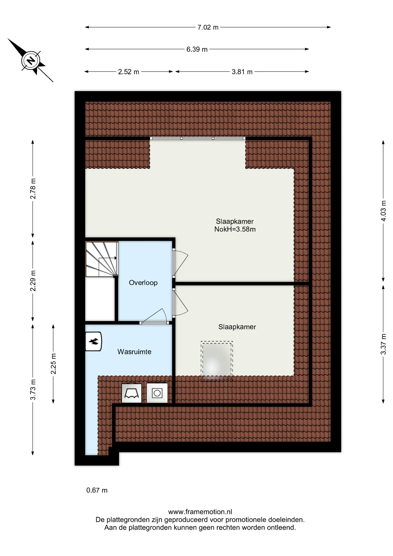 Slaapkamer 3 (ca. 22 m²) gelegen aan de achterzijde en voorzien van een dakkapel