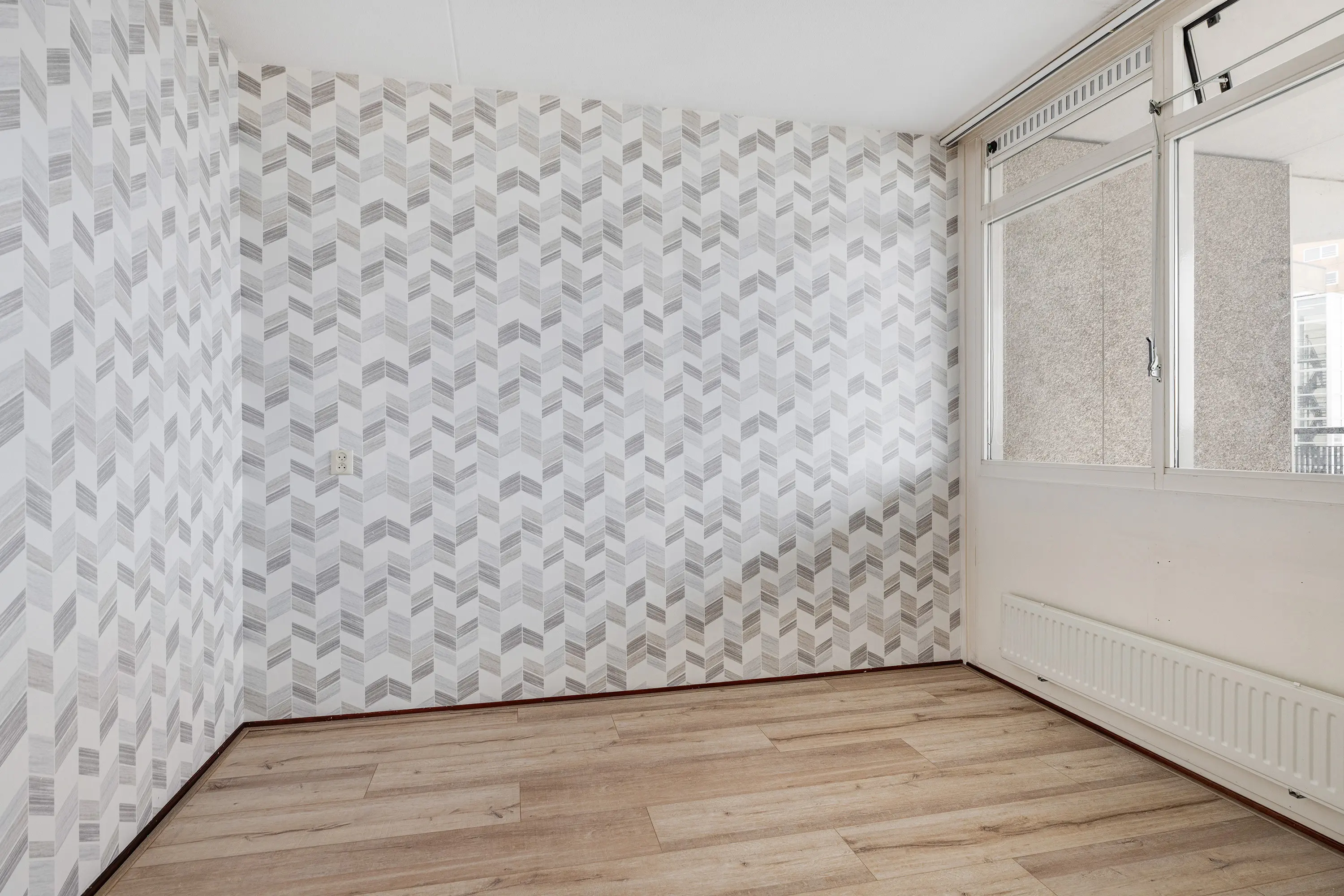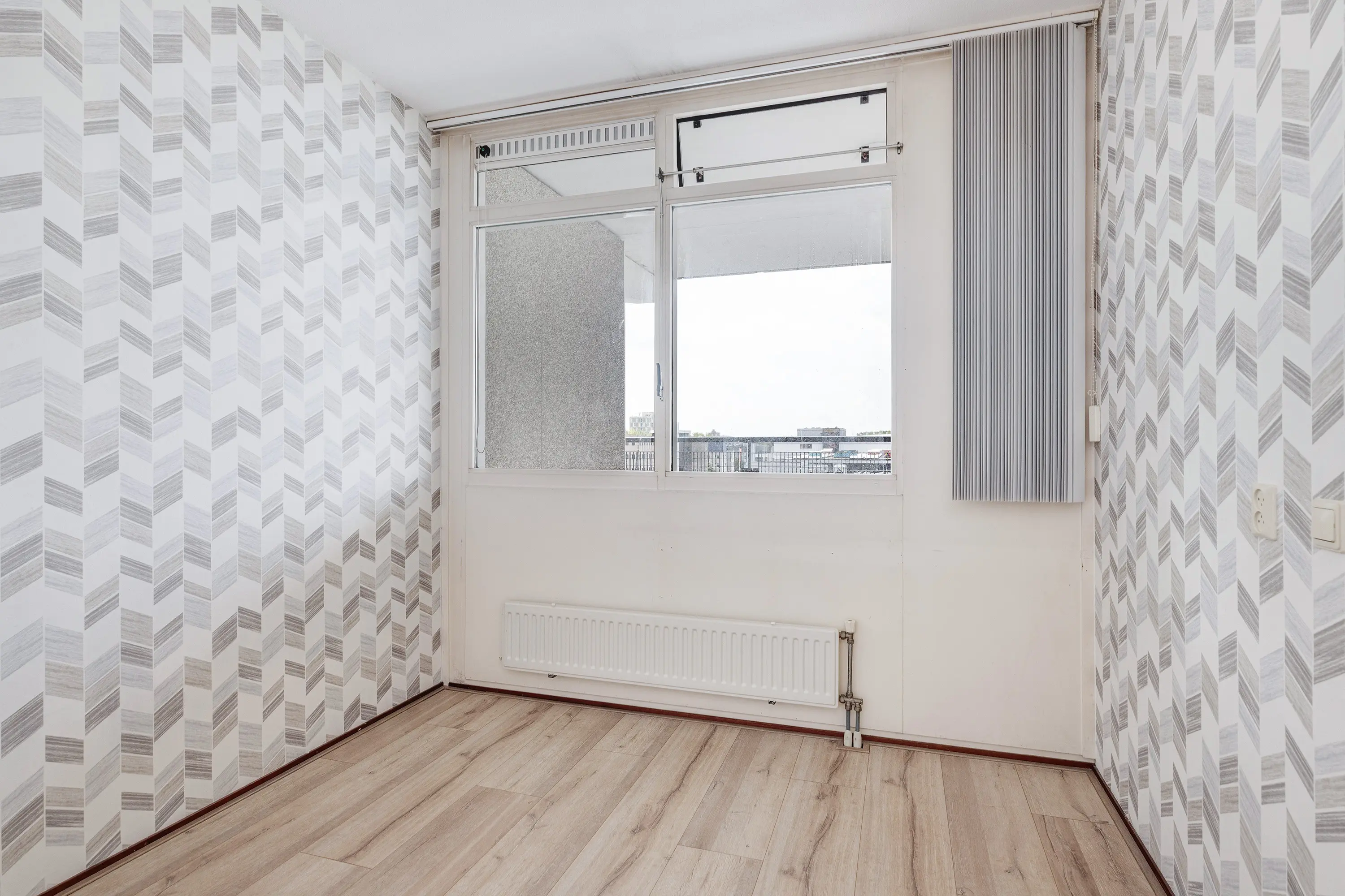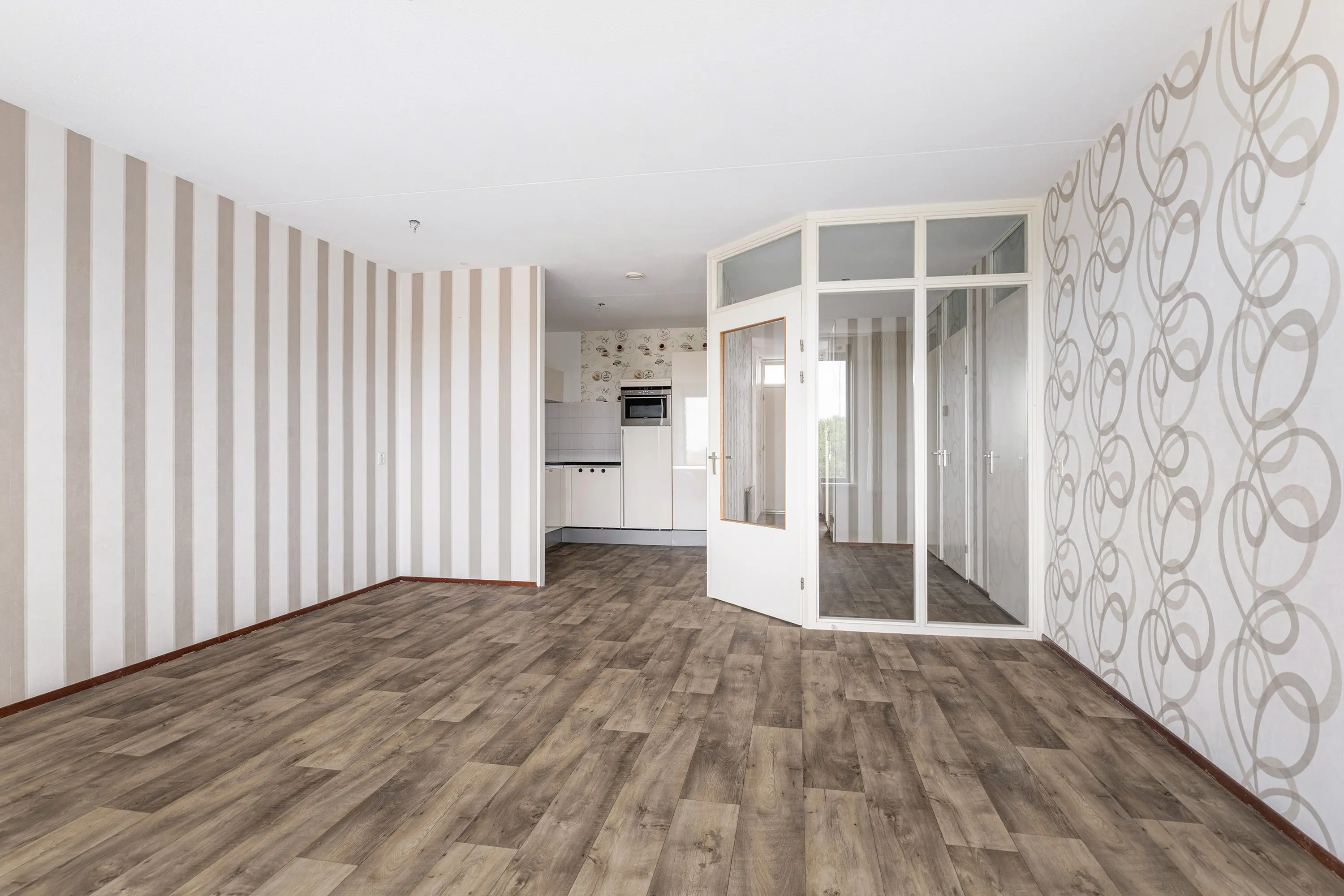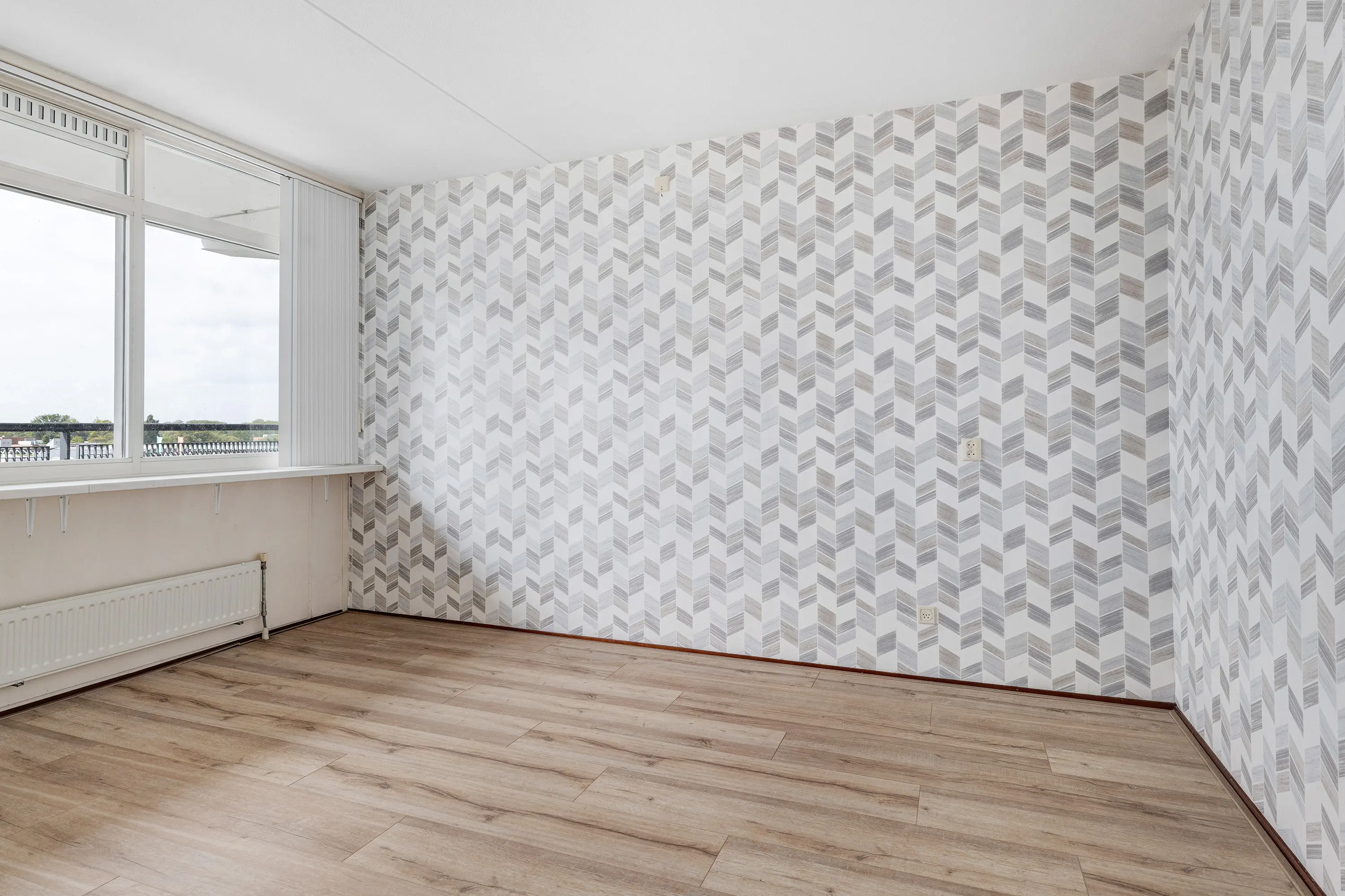 Naast de woonkamer bevinden zich twee slaapkamers aan de galerijzijde, beide afgewerkt met een laminaatvloer en ideale ruimtes voor slaap- of studeervertrekken.