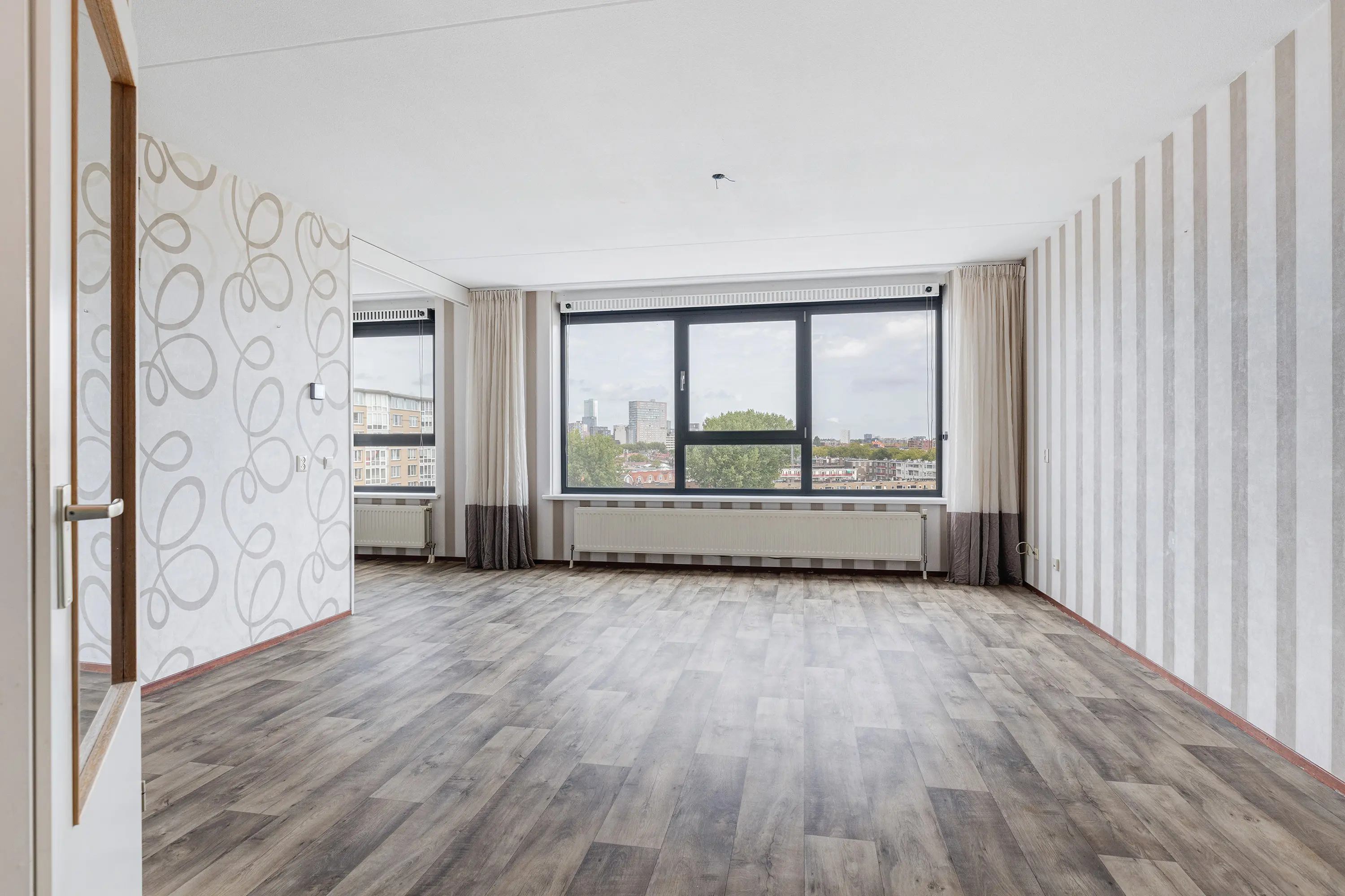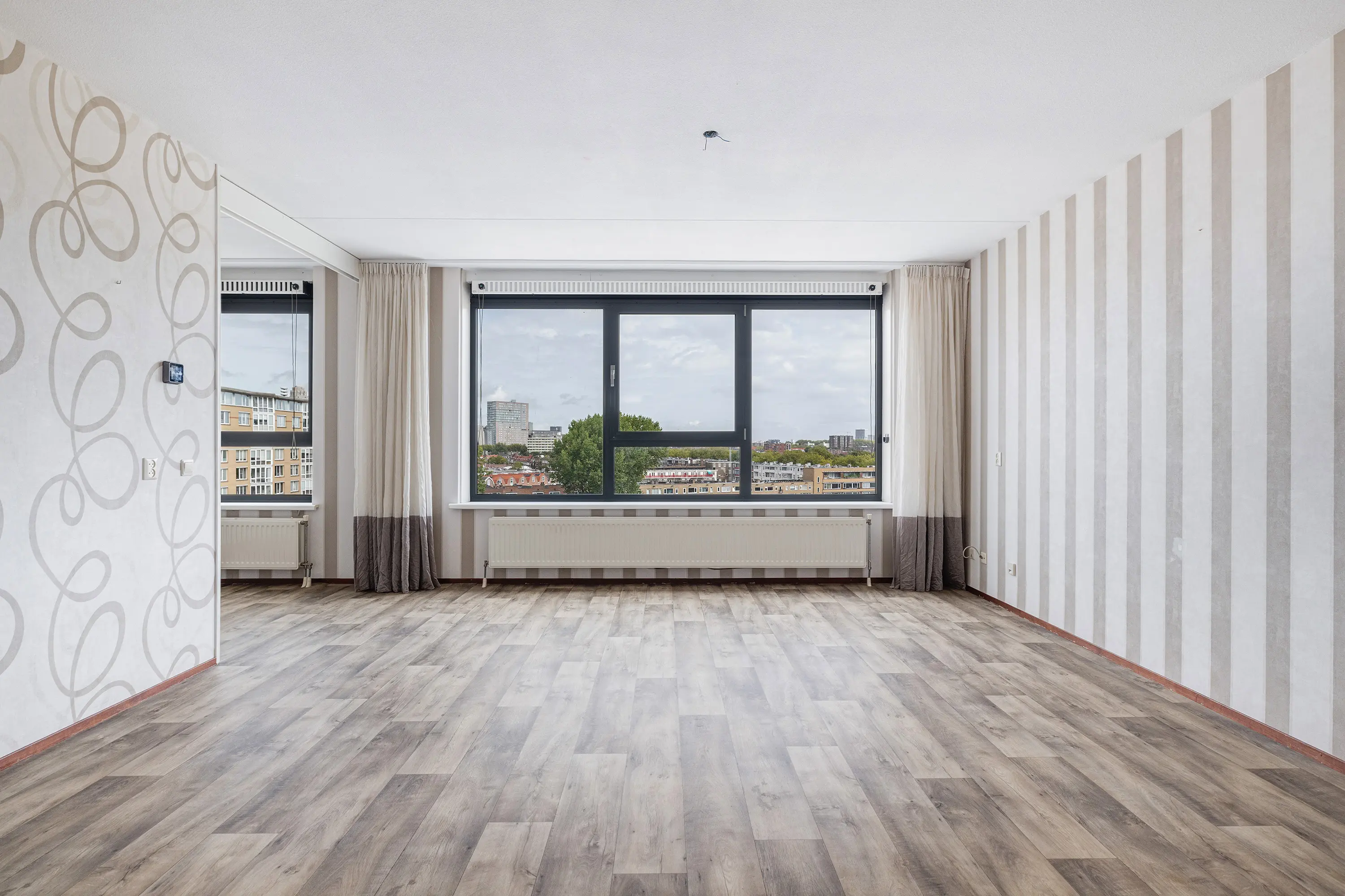 Het appartement zelf is volledig geïsoleerd, waardoor je geen last hebt van geluidsoverlast. Vanuit de woonkamer geniet je van een prachtig uitzicht over de omgeving, terwijl je in de open keuken met moderne inbouwapparatuur alle ruimte hebt om lekker te koken. De woning beschikt over drie slaapkamers, waaronder een slaapkamer ensuite grenzend aan de woonkamer die af te sluiten is met een schuifdeur voor extra privacy. De badkamer is modern en compleet met een ligbad en aparte douche, en er is een aparte wasruimte voor je wasmachine en droger.