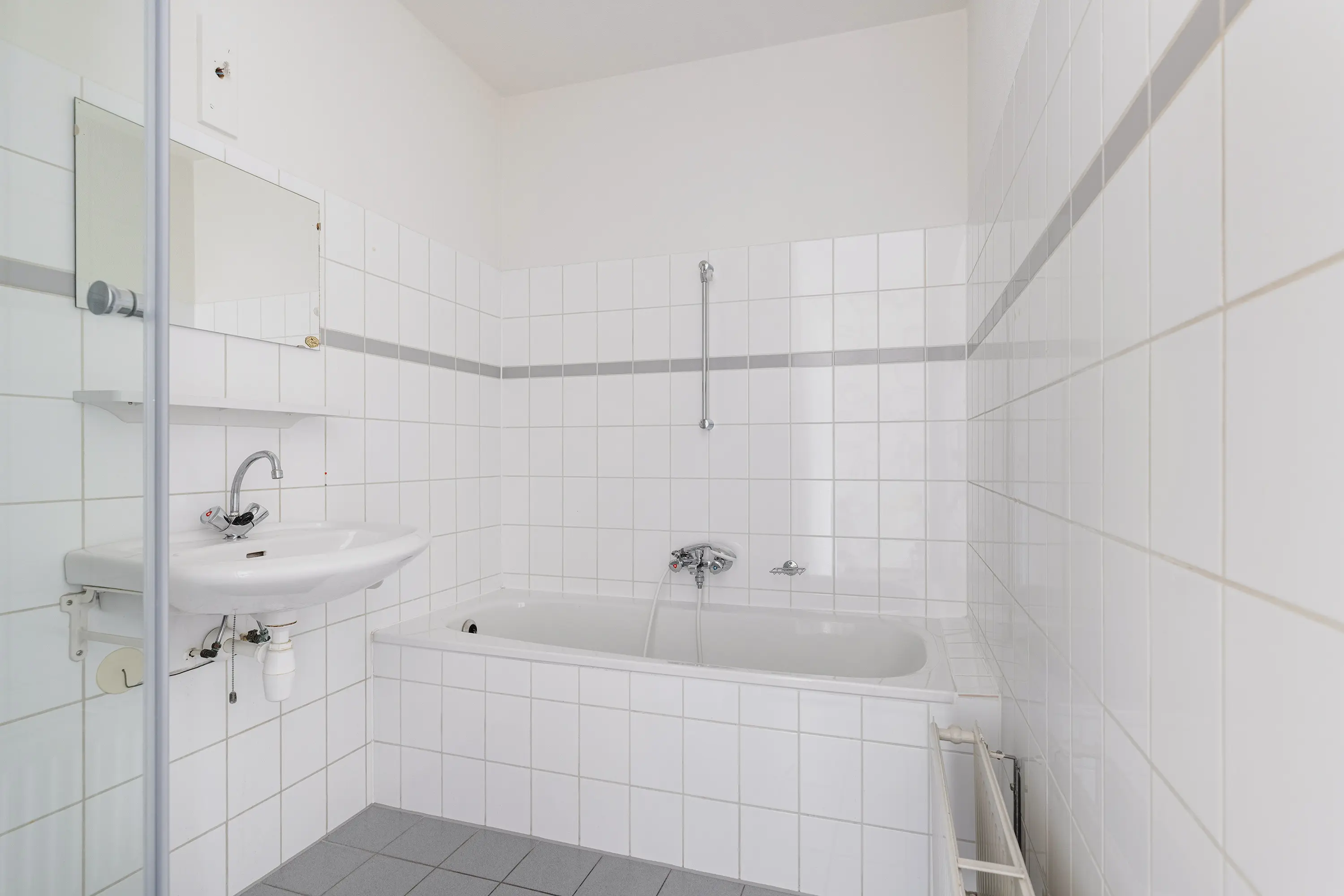 Het appartement beschikt tevens over een separaat toilet met duoblok en fonteintje. Aan de galerijzijde heb je in de nis voor de deur een eigen buitenruimte, waar je een zitje kunt plaatsen om van buiten te kunnen genieten.