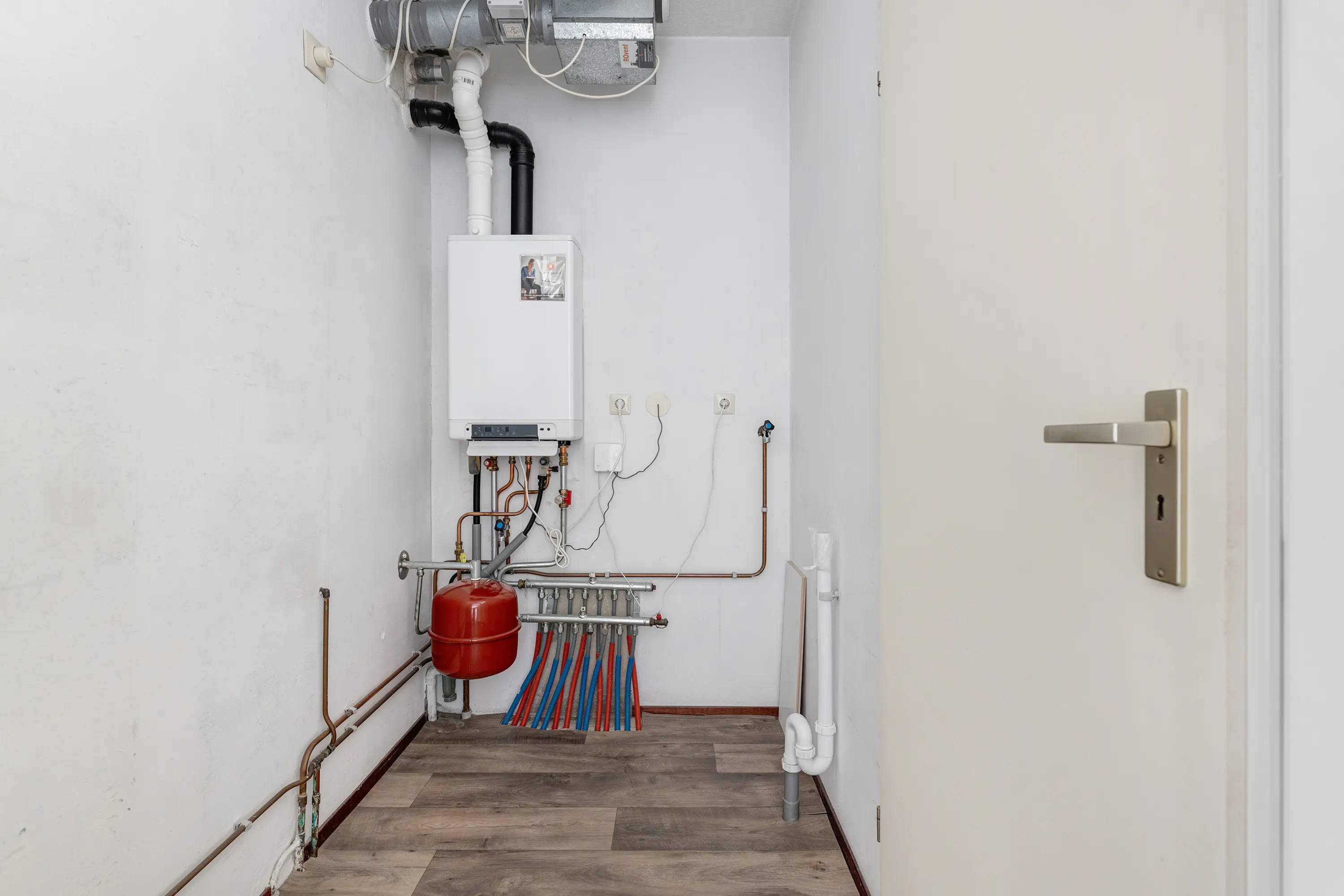 Ruime separate wasruimte met CV en opslagruimte