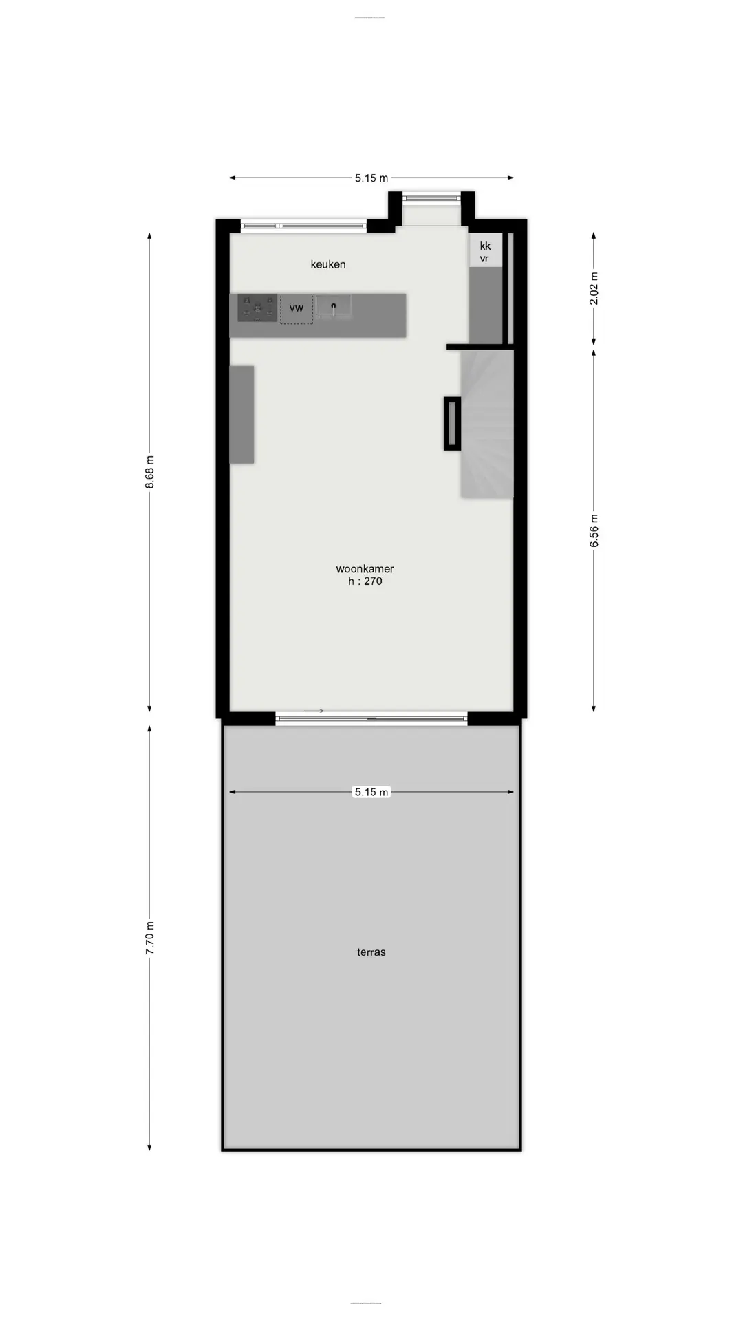 De riante woonkamer is bijzonder licht dankzij de grote raampartijen en schuifpui naar het zonnige terras. Het terras is afgewerkt met kunstgras en omgeven door een strakke schutting, wat zorgt voor veel privacy. Bovendien beschikt het terras over een achteruitgang.