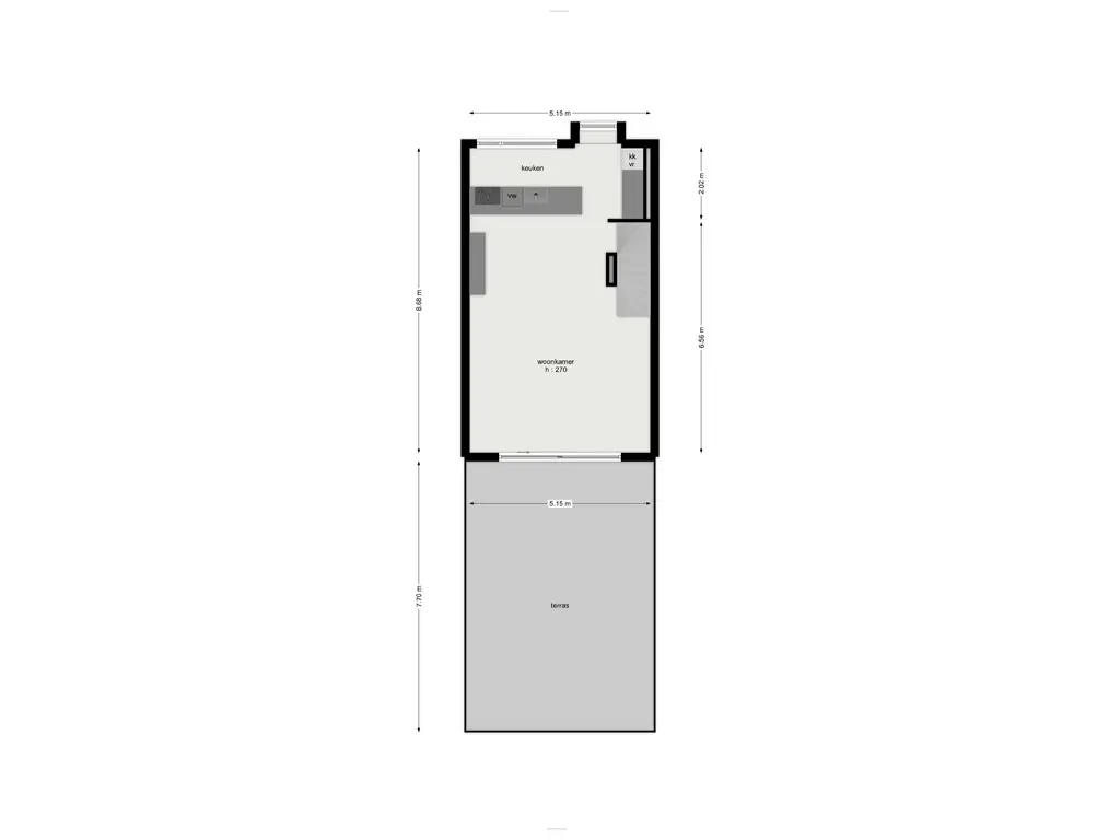 De open keuken aan de voorzijde van de woning is een echte blikvanger. Deze is voorzien van een groot schiereiland met RVS-blad, inductie kookplaat, afzuig schouw, gootsteen en volop bergruimte. De keukeninrichting combineert een stijlvolle donkerblauwe kleur met houtlook accenten: een hete luchtoven, koelkast en een vrieskast ontbreken uiteraard niet in deze keuken.